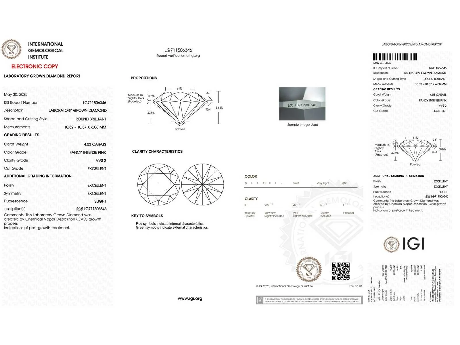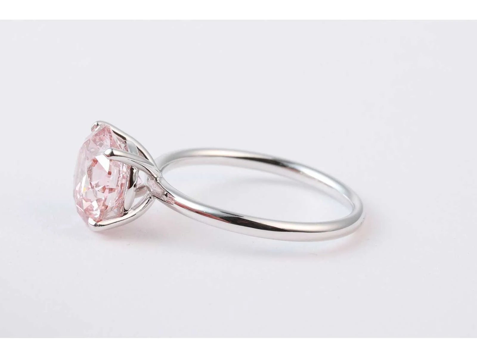 Vorm: Rond Gewicht: 4.03CT Kleur: Chique intens roze Helderheid: VVS2 uitstekend Symmetrie: uitstekend Ringgewicht: 2,37 gr. Witgoud Zuiverheid: 14 karaat (585) Bezichtiging op afspraak Materiaal: Witgoud Ringmaat : 53 Certificaat: Ja Lage schatting: 8700€