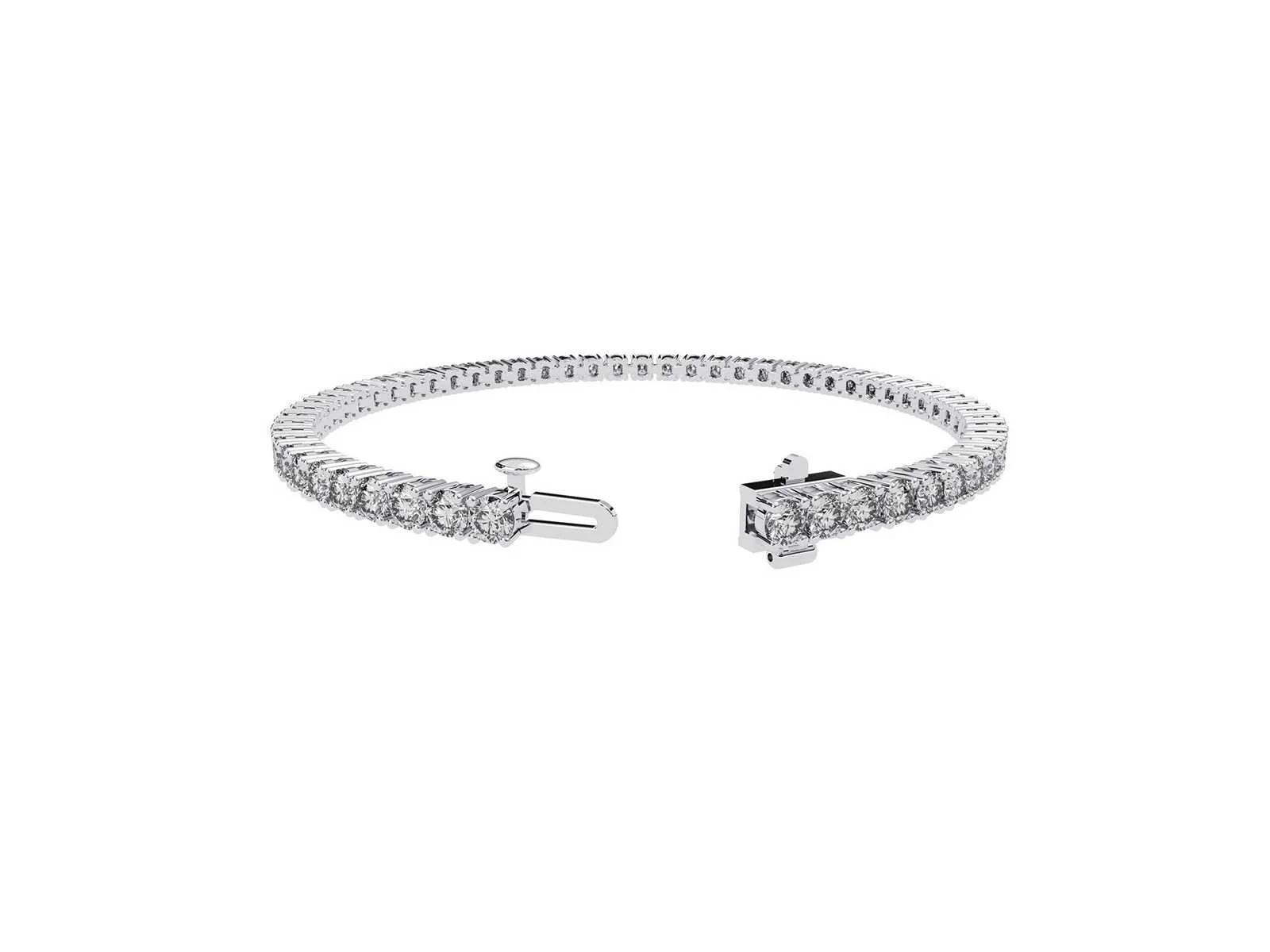 Unieke kenmerken: - Metaal: 14 kt wit goud 10,90 g Diamanten: 57 stuks, briljant geslepen, totaal 5,72 ct Kleur: E - F Duidelijkheid: VS - IGI-certificaat: 42J1903525 Lengte: 17,50 – 18,00 cm Bezichtiging op afspraak Materiaal: Witgoud Maten: 17,5-18 cm Lage schatting: 8900€