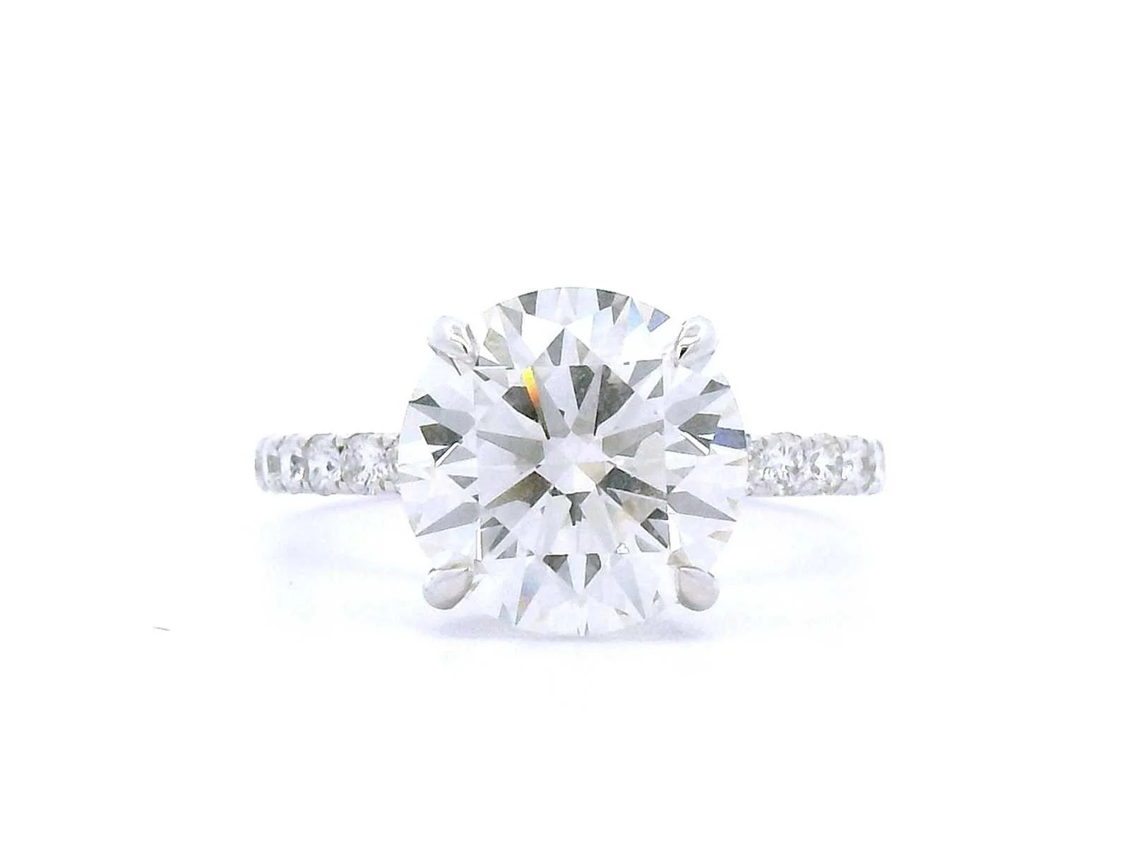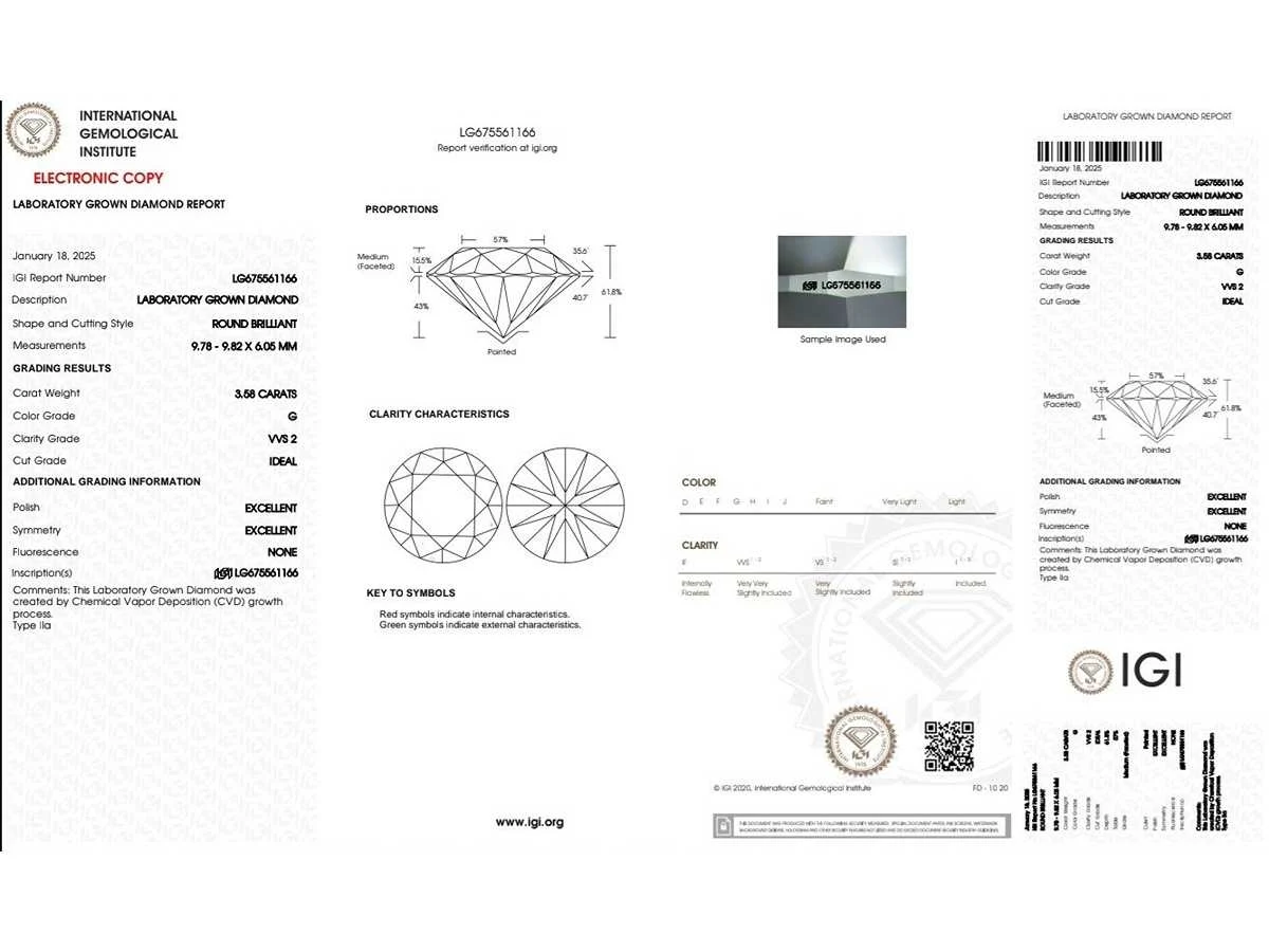 Exclusieve ring van 14K witgoud Rapportnummer IGI: LG675561166 Vorm: Rond schitterend Gewicht van de hoofdsteen: 3,58 CT Kleur: G Helderheid: VVS2 Snede: uitstekend Symmetrie: uitstekend Omringende stenen - 0,53 karaat (30 stuks) Totaal karaatgewicht - 4,11 karaat Totale ringgewicht: 2,82 gram 14K witgoud Zal worden geleverd met IGI-certificaat. Ringmaat - 54 EU / 14 IT / 6,75 US Bezichtiging op afspraak Materiaal: Witgoud Ringmaat : 54 Certificaat: Ja