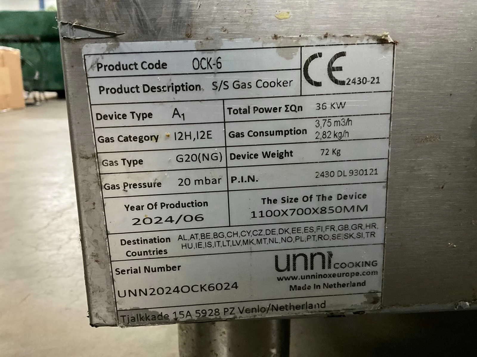 2024 unninox ock-6 fornuis
