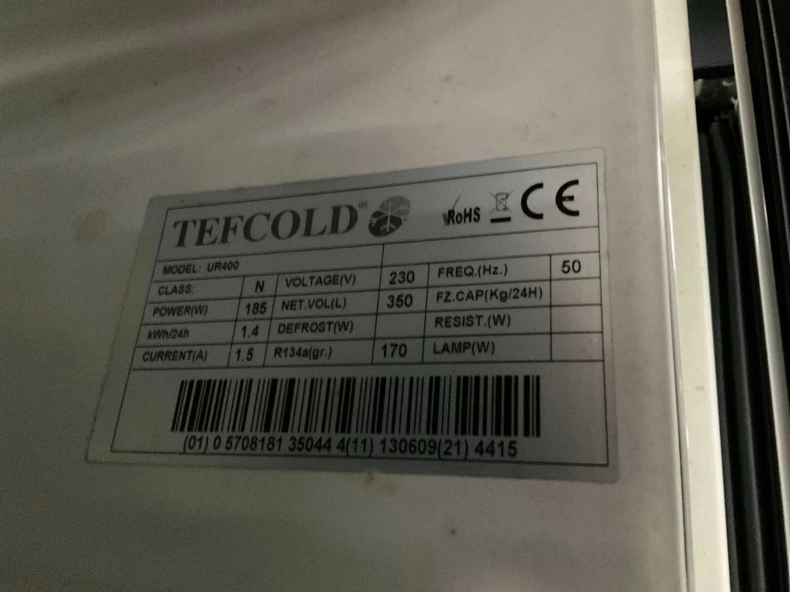 Deur rechtsdraaiend Merk: Tefcold Model: UR400 Totaal netto inhoud: 350l Spanning: 230V Kleur: Wit Lengte: 60cm Breedte: 60cm Hoogte: 185cm