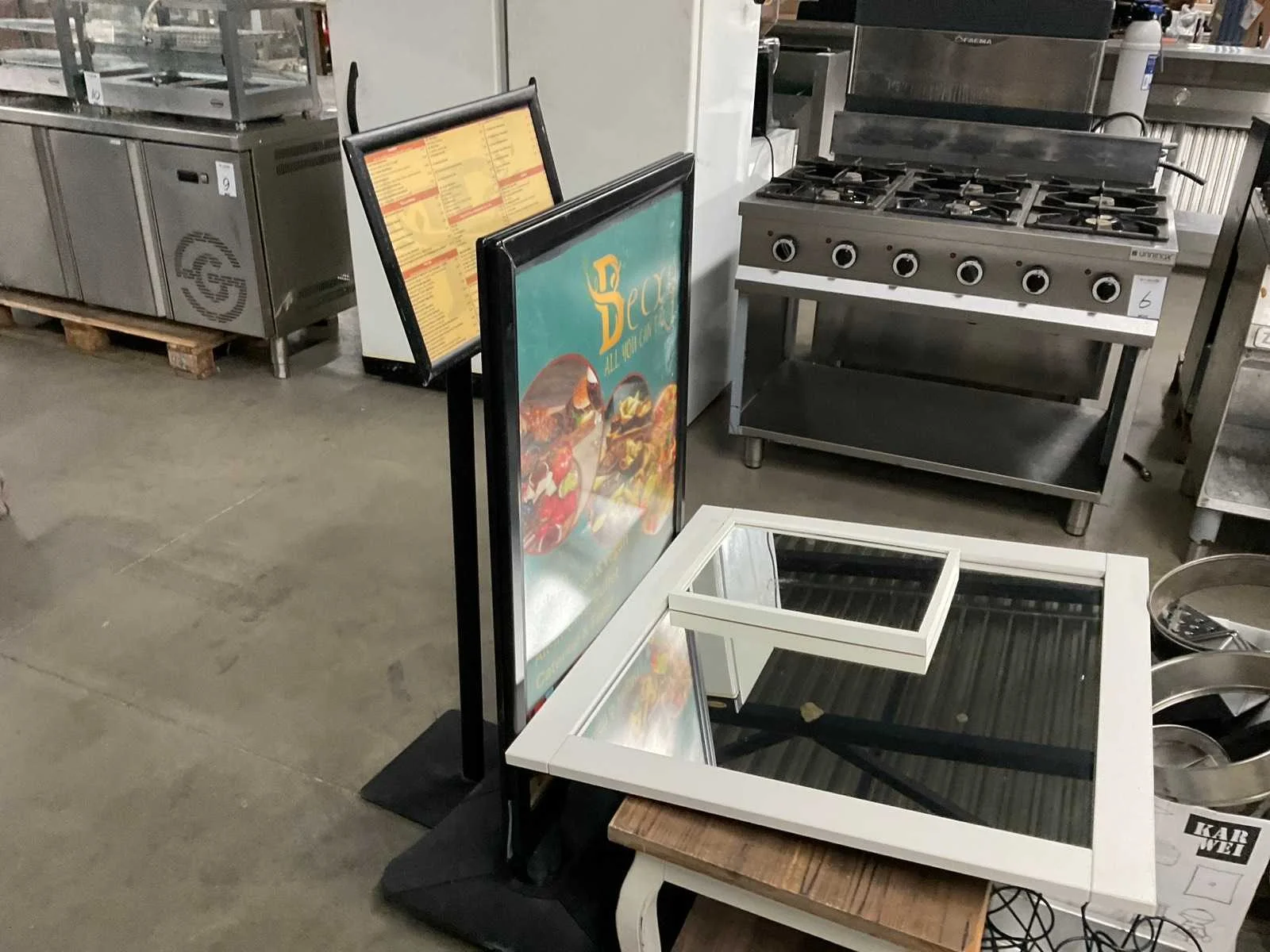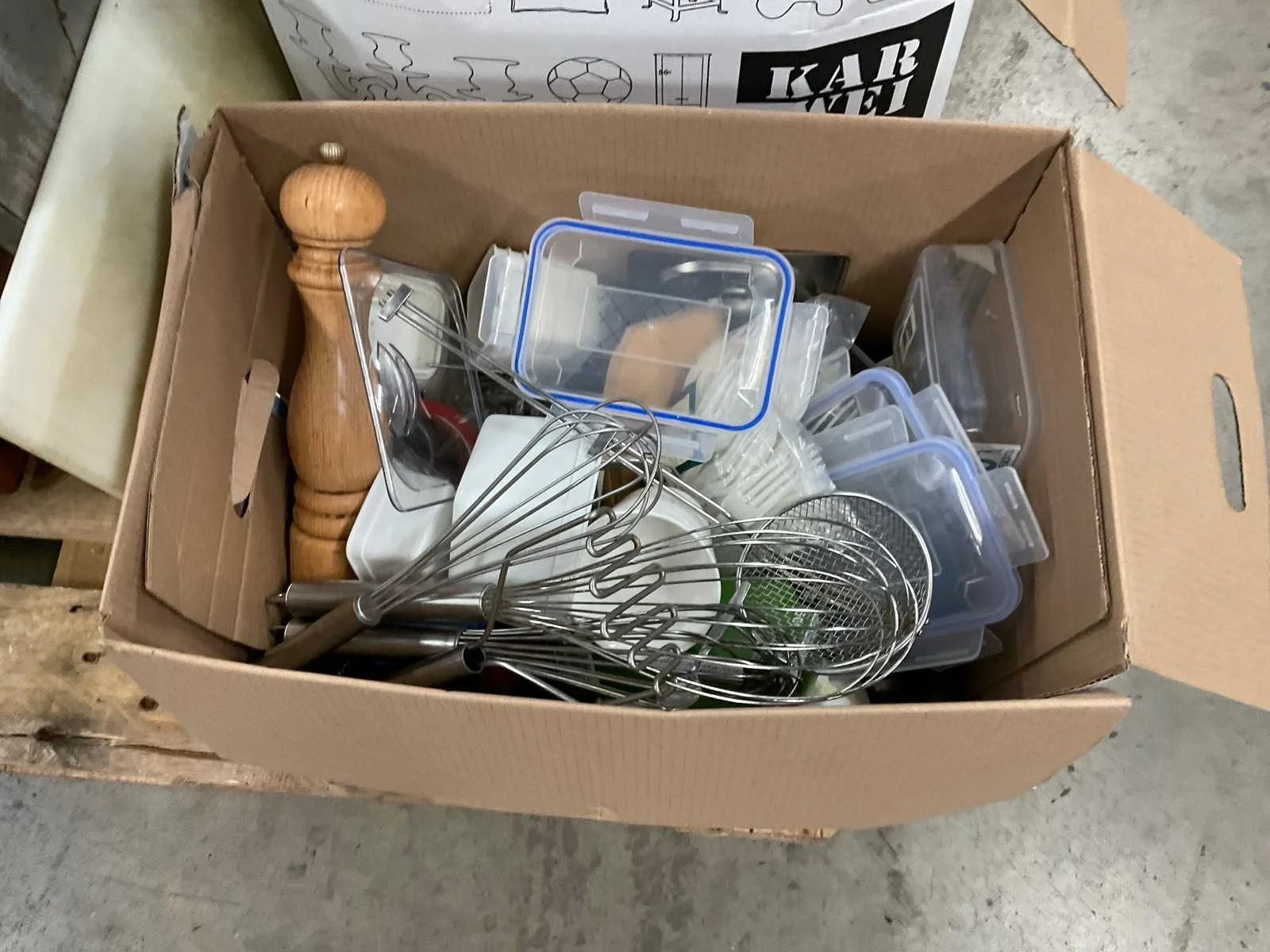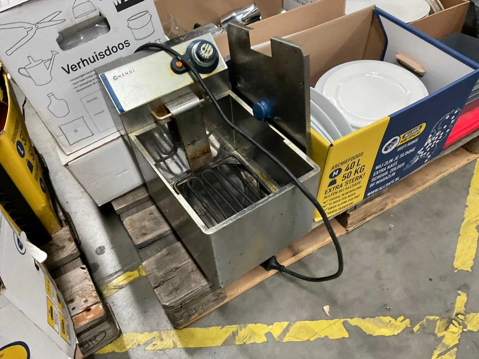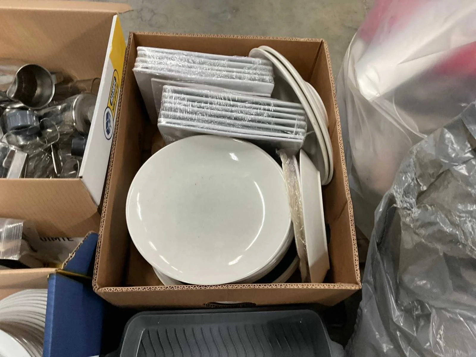 Op 4 pallets 1e: Spiegels 2e: Glazen 3e: Borden 4e: Schoonmaakartikelen 5e: Stoepbord 6e: Bakvormen
