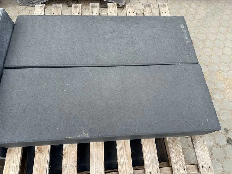 Afmetingen circa: 100 cm x 35 cm x 15 cm. Kleur: Zwart. Aantal pallets: 1. Deze kavel kan op verzoek bezorgd worden. De kosten bedragen voor dit kavel €110,00 exclusief BTW. Wilt u meerdere kavels laten bezorgen? Vanaf het tweede tot en met de vijfde kavel betaalt u €75,00 euro ex BTW per kavel. Voor 6 kavels of meer betaalt u een vast bedrag van €450,00 ex BTW. Levering vindt alleen plaats in Nederland. Kosten bezorging op de Waddeneilanden en België op aanvraag. Voor het laten bezorgen van uw kavel(s) dient u zelf voor uiterlijk 9 november contact op te nemen via e-mail, bezorging@dbtrading.nl . Na deze datum worden kavels automatisch geleverd in Hulst waar u uw kavel(s) kan afhalen op de afhaaldag. Bezorginformatie: Het los-adres moet goed bereikbaar zijn voor een vrachtwagen met trailer waarop een kraan is bevestigd. Deze kraan kan de pallets maximaal 4 meter vanaf de wagen lossen. Hiermee dient u rekening te houden i.v.m. het vrijhouden van de losplaats. De chauffeur heeft geen palletwagen tot zijn beschikking. Kleur: Zwart Lengte: 100cm Breedte: 35cm Hoogte: 15cm Materiaal: Traptreden van beton