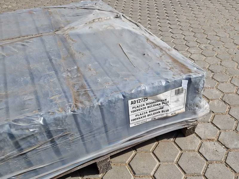 Type: Plaza boordsteen. Afmetingen circa: 6 cm x 20 cm x 100 cm. Aantal pallets: 3. Deze kavel kan op verzoek bezorgd worden. De kosten bedragen voor dit kavel €110.00 exclusief BTW. Wilt u meerdere kavels laten bezorgen? Vanaf het tweede tot en met de vijfde kavel betaalt u €75.00 euro ex BTW per kavel. Voor 6 kavels of meer betaald u een vast bedrag van €450.00 ex BTW. Levering vindt alleen plaats in Nederland. Kosten bezorging op de Waddeneilanden en België op aanvraag. Voor het laten bezorgen van uw kavel(s) dient u zelf voor uiterlijk 9 november contact op te nemen via e-mail. bezorging@dbtrading.nl . Na deze datum worden kavels automatisch geleverd in Hulst waar u uw kavel(s) kan afhalen op de afhaaldag. Bezorginformatie: Het los-adres moet goed bereikbaar zijn voor een vrachtwagen met trailer waarop een kraan is bevestigd. Deze kraan kan de pallets maximaal 4 meter vanaf de wagen lossen. Hiermee dient u rekening te houden i.v.m. het vrijhouden van de losplaats. De chauffeur heeft geen palletwagen tot zijn beschikking. Kleur: Belgian blue Lengte: 8cm Breedte: 20cm Hoogte: 50cm Materiaal: Opsluitbanden voor de tuin