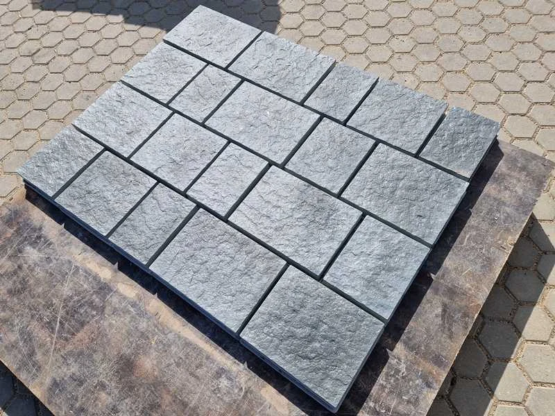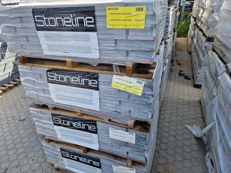 Type: Flammed stone. Afmetingen circa: Wildverband diverse lengtes. 21 cm breed en 6 cm dik. Aantal pallets: 11. Deze kavel kan op verzoek bezorgd worden. De kosten bedragen voor dit kavel €110.00 exclusief BTW. Wilt u meerdere kavels laten bezorgen? Vanaf het tweede tot en met de vijfde kavel betaalt u €75.00 euro ex BTW per kavel. Voor 6 kavels of meer betaalt u een vast bedrag van €450.00 ex BTW. Levering vindt alleen plaats in Nederland. Kosten bezorging op de Waddeneilanden en België op aanvraag. Voor het laten bezorgen van uw kavel(s) dient u zelf voor uiterlijk 9 november contact op te nemen via e-mail; bezorging@dbtrading.nl . Na deze datum worden kavels automatisch geleverd in Hulst waar u uw kavel(s) kan afhalen op de afhaaldag. Bezorginformatie: Het los-adres moet goed bereikbaar zijn voor een vrachtwagen met trailer waarop een kraan is bevestigd. Deze kraan kan de pallets maximaal 4 meter vanaf de wagen lossen. Hiermee dient u rekening te houden i.v.m. het vrijhouden van de losplaats. De chauffeur heeft geen palletwagen tot zijn beschikking. Aantal m² per verpakking: 5.51m² Kleur: Ocean blue Gewicht: 7205kg Breedte: 21cm Hoogte: 6cm Materiaal: Betonsteen voor buiten