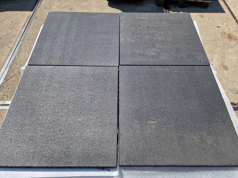 Afmetingen circa 60 cm x 60 cm x 44 mm. Aantal pallets: 2. Deze kavel kan op verzoek bezorgd worden. De kosten bedragen voor dit kavel €110,00 exclusief BTW. Wilt u meerdere kavels laten bezorgen? Vanaf het tweede tot en met de vijfde kavel betaalt u €75,00 euro ex BTW per kavel. Voor 6 kavels of meer betaalt u een vast bedrag van €450,00 ex BTW. Levering vindt alleen plaats in Nederland. Kosten bezorging op de Waddeneilanden en België op aanvraag. Voor het laten bezorgen van uw kavel(s) dient u zelf voor voor uiterlijk 9 november contact op te nemen via e-mail; bezorging@dbtrading.nl . Na deze datum worden kavels automatisch geleverd in Hulst waar u uw kavel(s) kan afhalen op de afhaaldag. Bezorginformatie: Het los-adres moet goed bereikbaar zijn voor een vrachtwagen met trailer waarop een kraan is bevestigd. Deze kraan kan de pallets maximaal 4 meter vanaf de wagen lossen. Hiermee dient u rekening te houden i.v.m. het vrijhouden van de losplaats. De chauffeur heeft geen palletwagen tot zijn beschikking. Kleur: Zwart bruin genuanceerd Lengte: 60cm Breedte: 60cm Dikte: 40mm Aantal m² per verpakking: 7.5m² Aantal pakken: 2