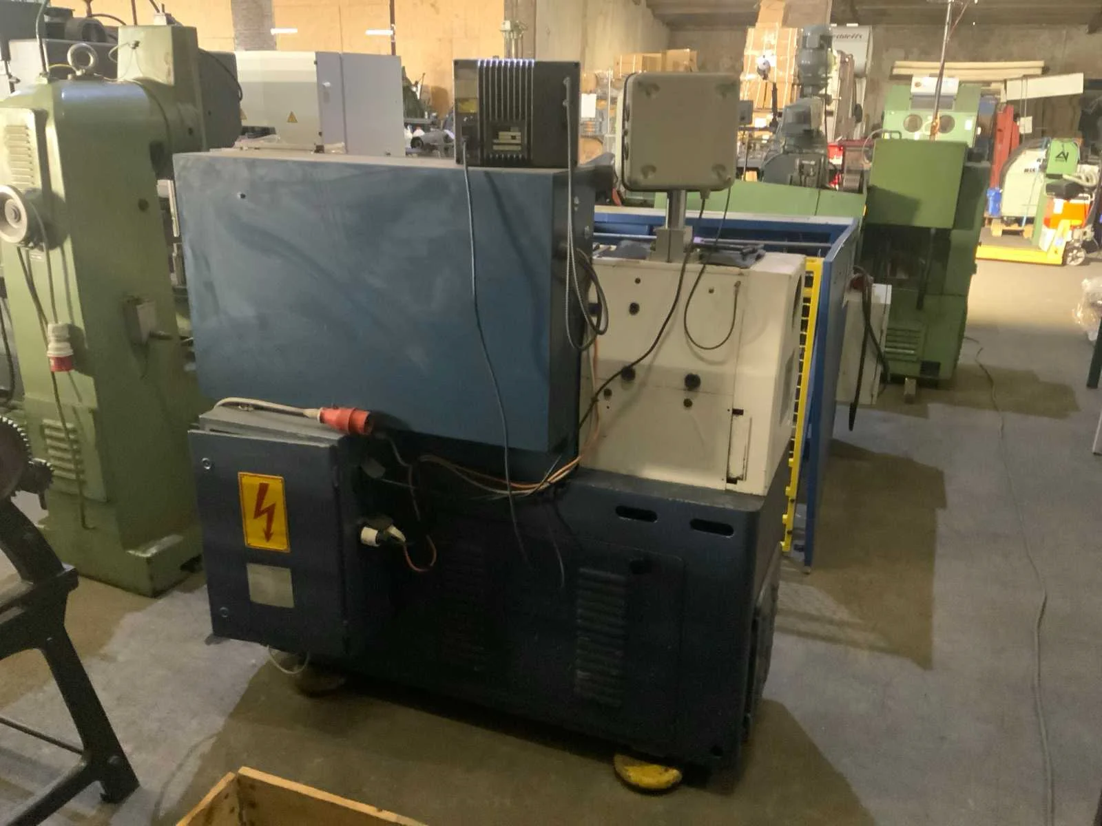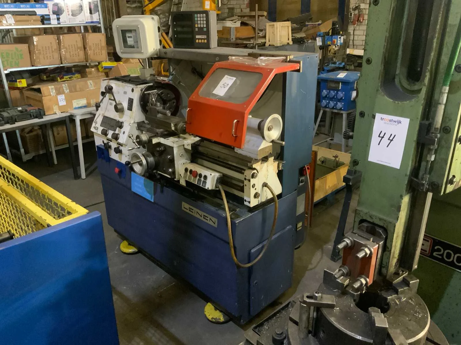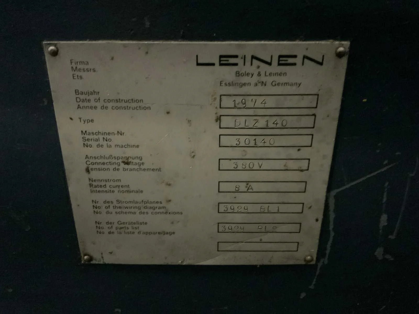 Fagor XYZ digitale uitlezing type: VN 300 en fq toerenregeling Merk: Leinen Type: DLZ140 Bouwjaar: 1974 Serienummer: 30140 Draailengte: 500mm Draai: 280mm Holle spil Ø: 32mm Snelheid van n =: 15rpm Snelheid tot n =: 3100rpm Aantal gereedschapwisselstations: 1 Koelmiddelpomp: true Aansluiting: 380V Afmeting l: 1550mm Afmeting b: 850mm Afmeting h: 1720mm