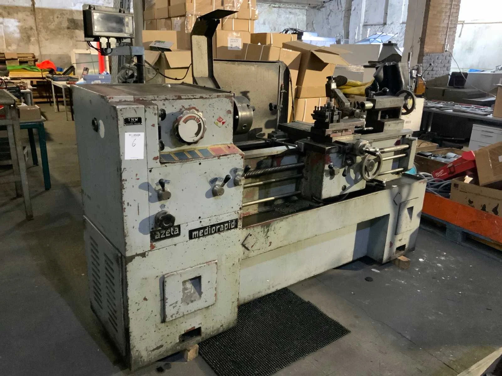 Toebehoren-mutitoyo 2 assig digitale uitlezing-meeloopbril-Rapid snelwissel beitelhouder met 8 houders,beschermkap klauwplaat.Los bedstuk voor de klauwplaat[zak]Draaidiam in de zak 590 mm. Merk: Azeta Type: Medio Rapid Serienummer: 46562 Draailengte: 1000mm Draai: 380mm Holle spil Ø: 40mm Aantal snelheden: 16 Snelheid van n =: 40rpm Snelheid tot n =: 1500rpm Aantal gereedschapwisselstations: 4 Koelmiddelpomp: true Aansluiting: 400V Machinegewicht: 1600kg Afmeting l: 2200mm Afmeting b: 900mm Afmeting h: 1500mm