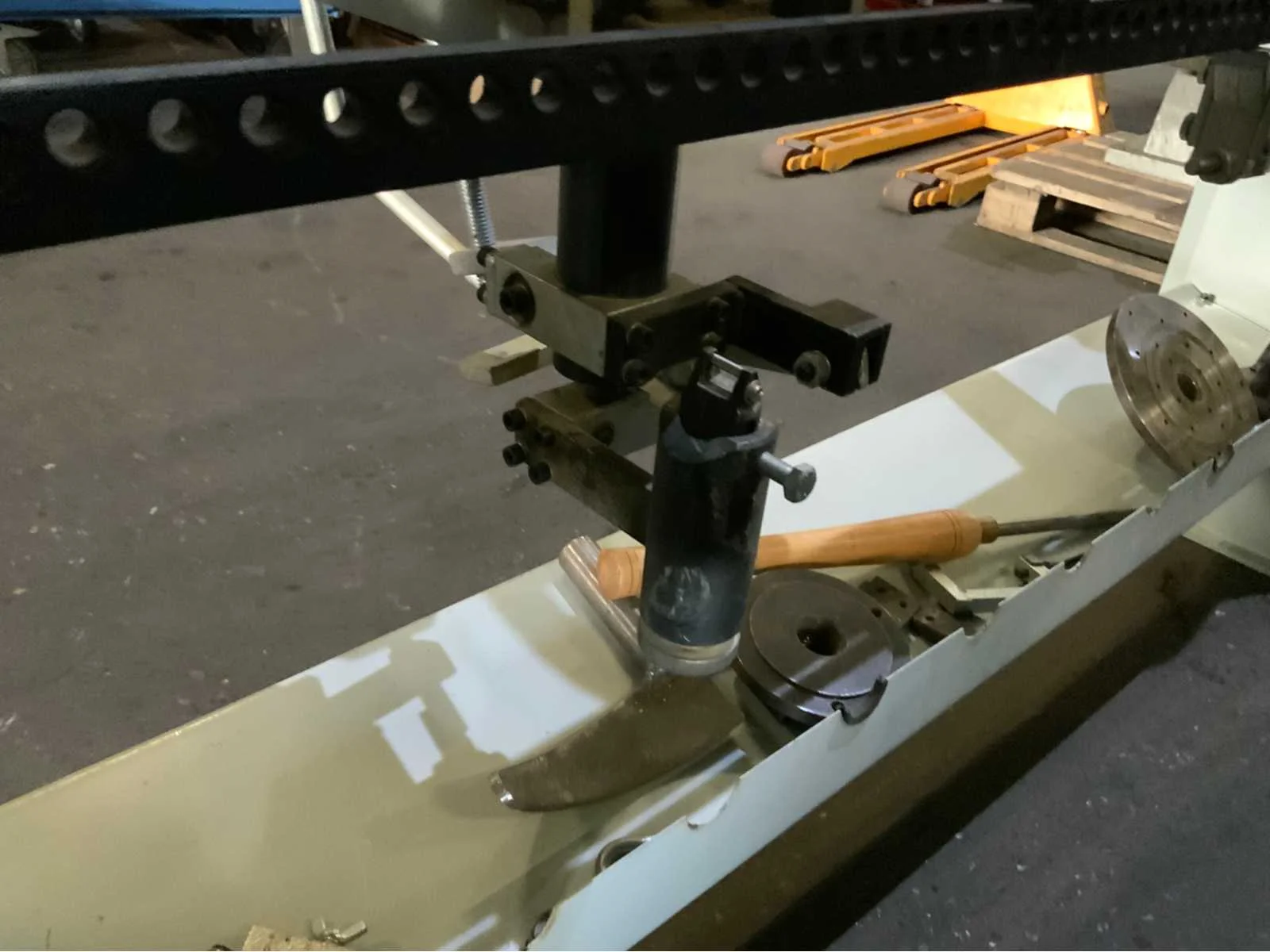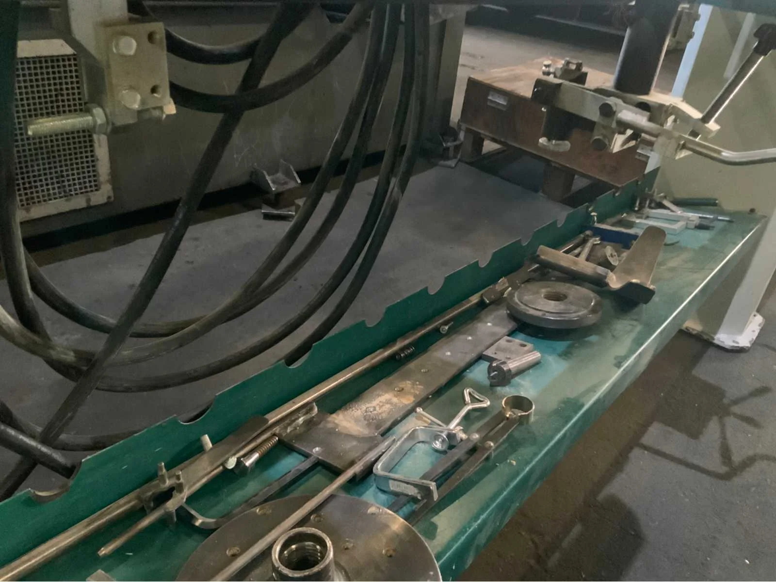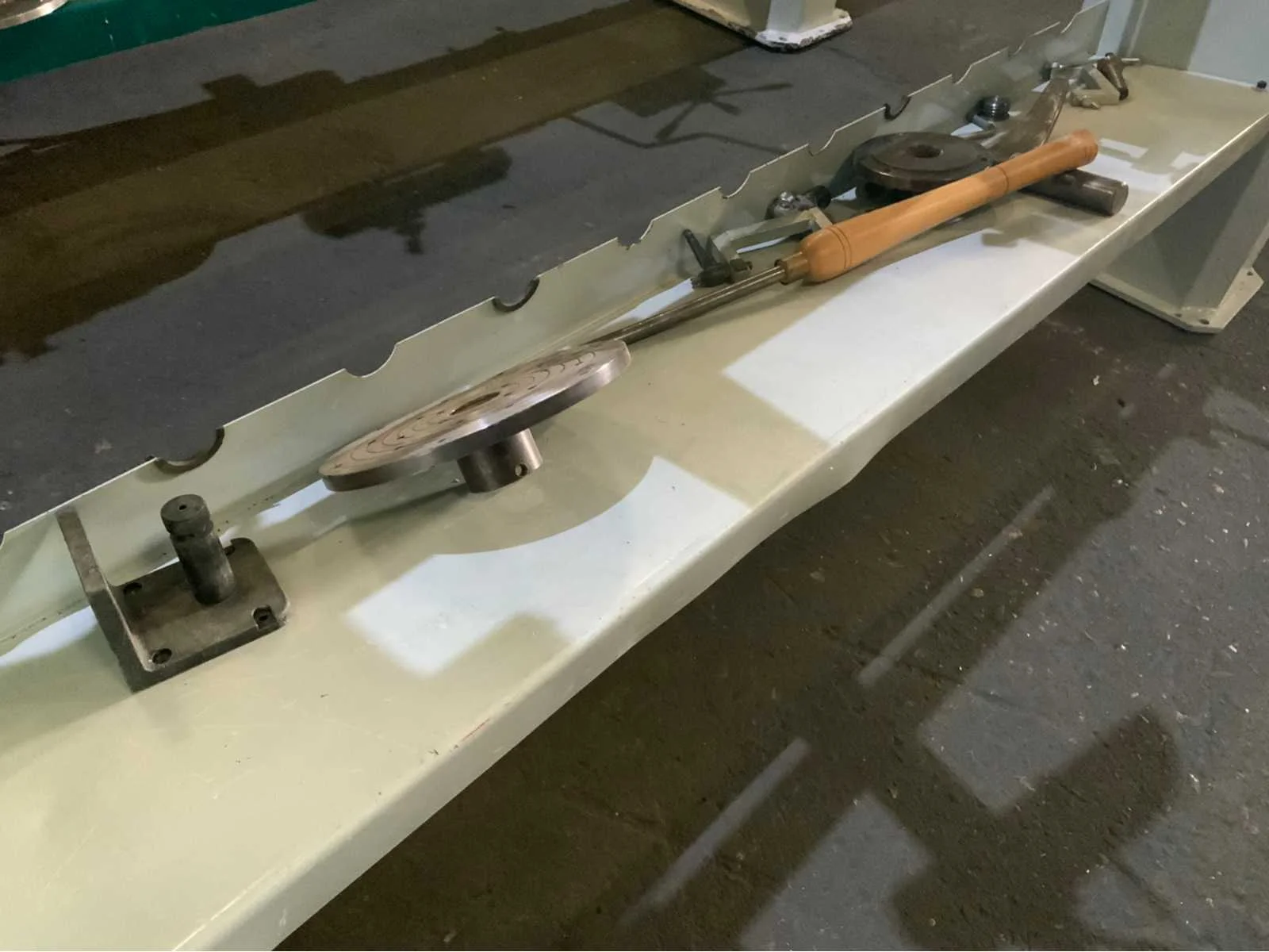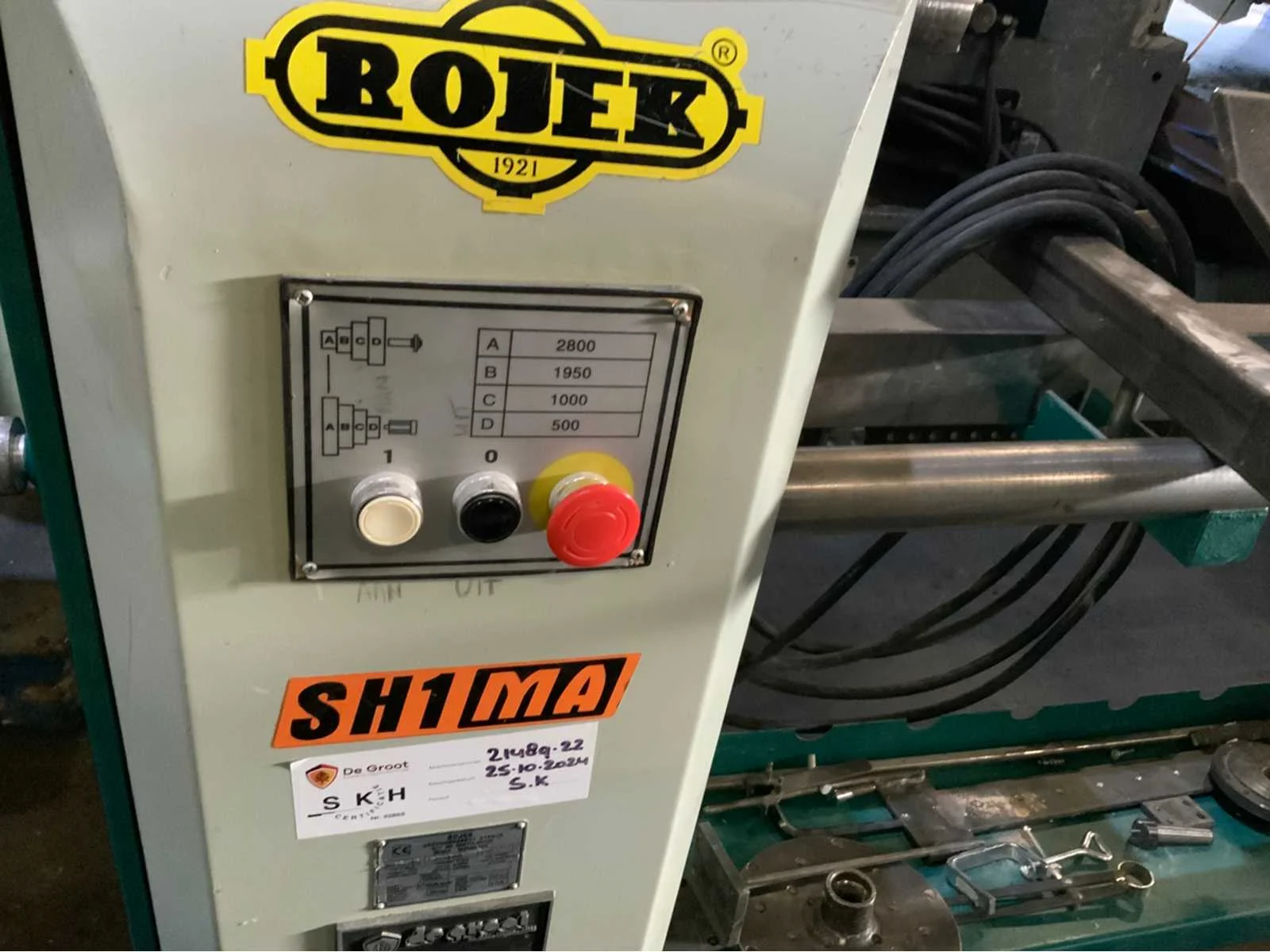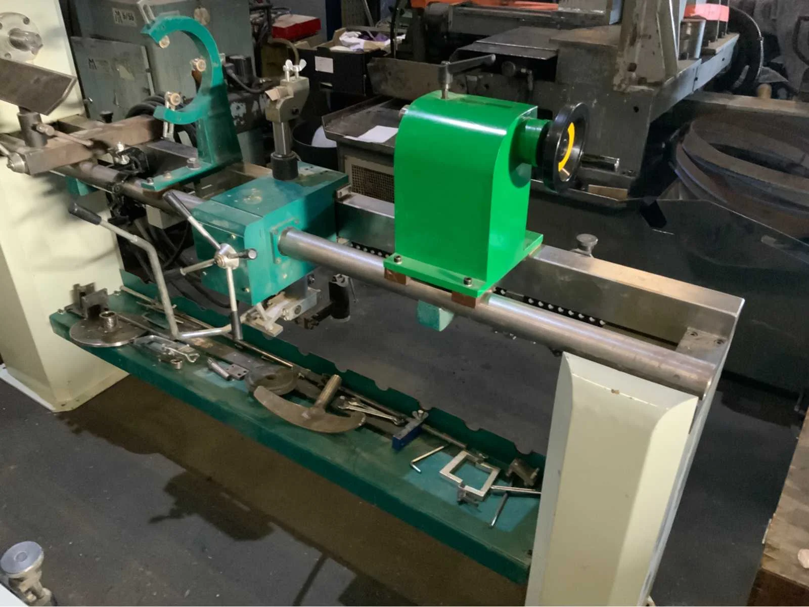 Copier inrichting-2 x stelplaat-Vaste Bril-2x Achterplaat Merk: ROJEK Copier draaibank Type: SH1 MA-1300 Bouwjaar: 2014 Serienummer: 130013008 Draailengte: 1300mm Draai: 450mm Aantal snelheden: 4 Snelheid van n =: 500rpm Snelheid tot n =: 2800rpm Motorvermogen (kW): 1.1kW Aansluiting: 400V Machinegewicht: 250kg Afmeting l: 2000mm Afmeting b: 500mm Afmeting h: 1200mm