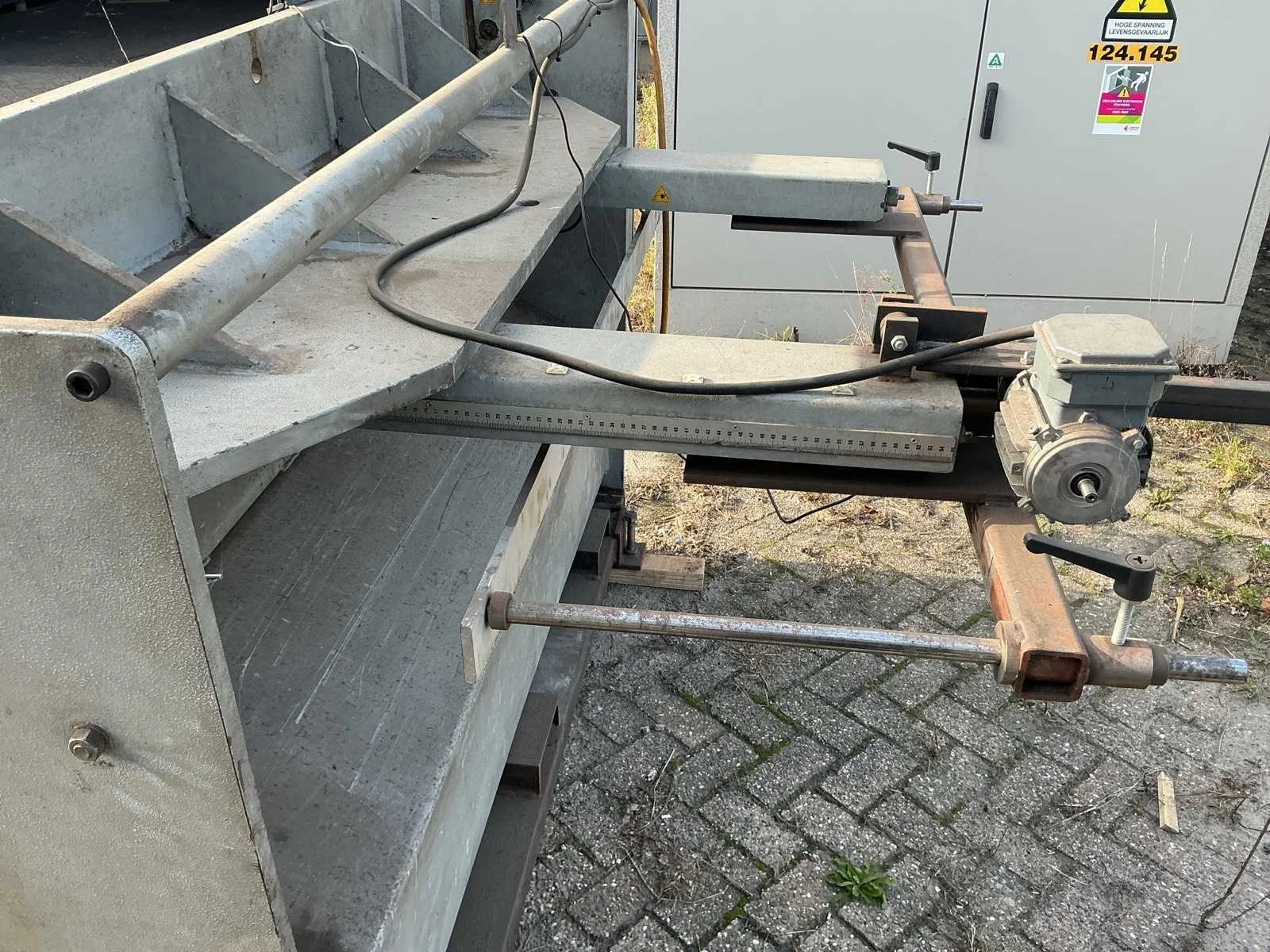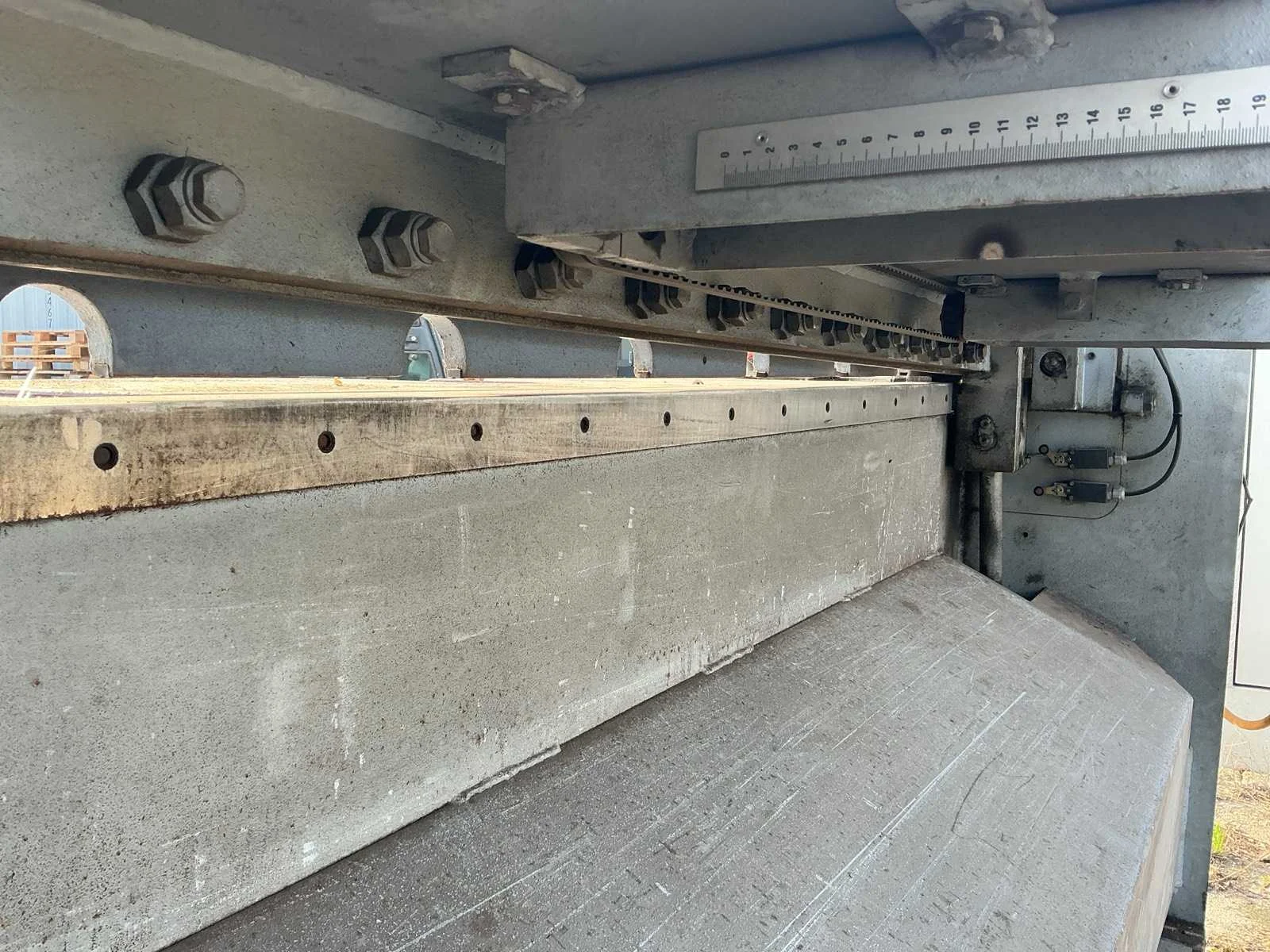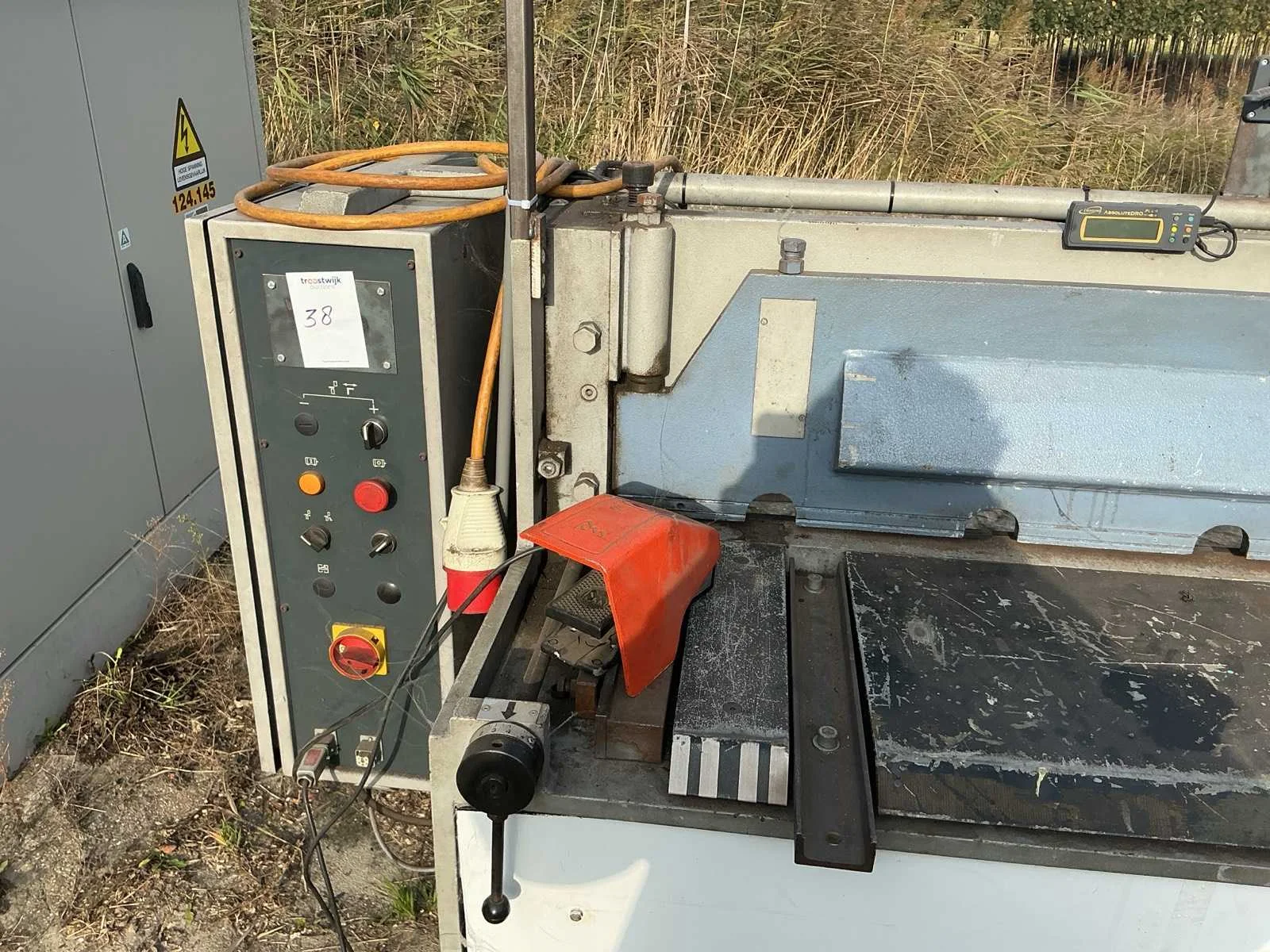 Voorzien van verlichting, voetpedaal, elektrische achteraanslag en verlengde achteraanslag Merk: Baykal Type: RGS 1560x3,5 Snijlengte: 1560mm Max. plaatdikte: 3.5mm Aansluiting: 380V Afmeting l: 2110mm Afmeting b: 1700mm Afmeting h: 2000mm