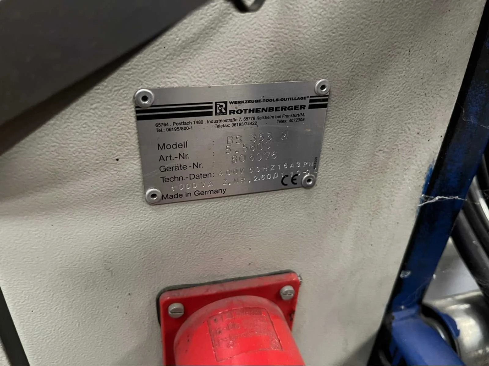 Voorzien van hydraulisch daalsysteem, zaag is in graden verstelbaar met extra lintzagen Merk: Rothenberger Type: BS 355 M Werkbreedte: 355mm Aansluiting: 380V Totale afmeting L: 2300mm Totale afmeting Breedte: 2110mm Totale afmeting Hoogte: 1900mm