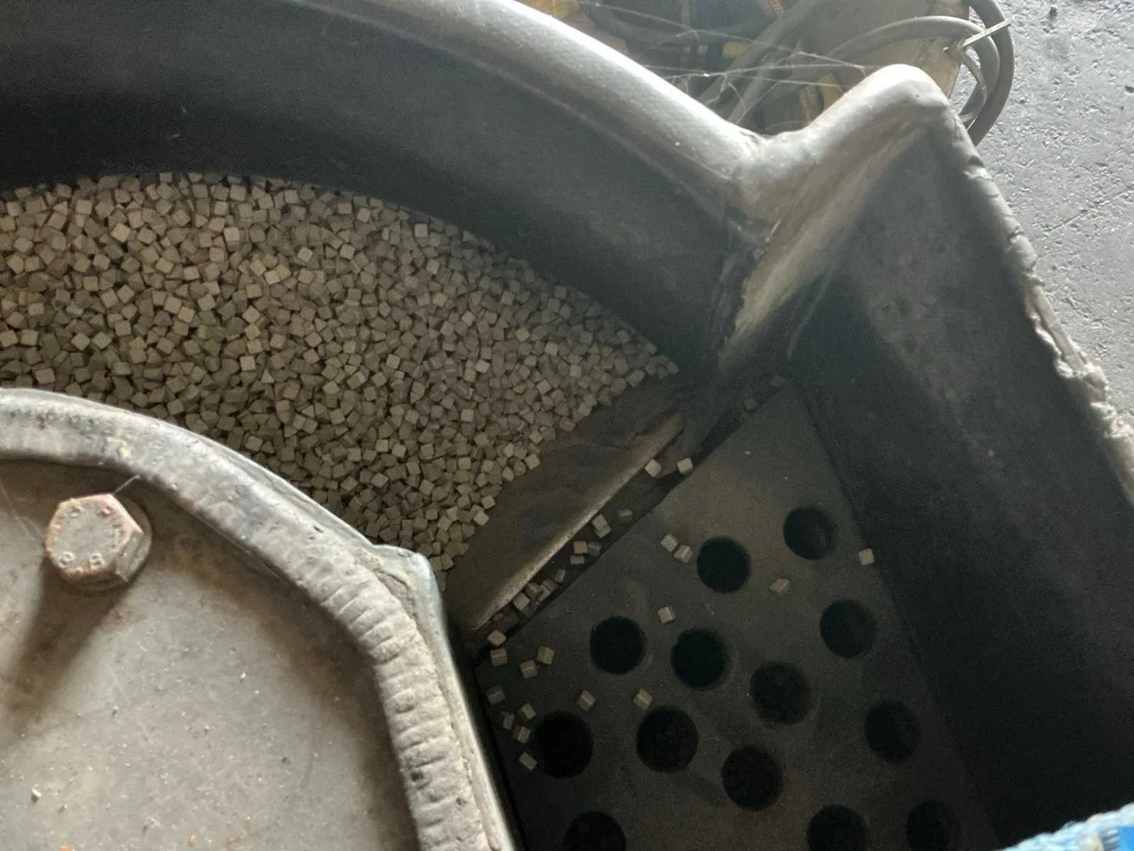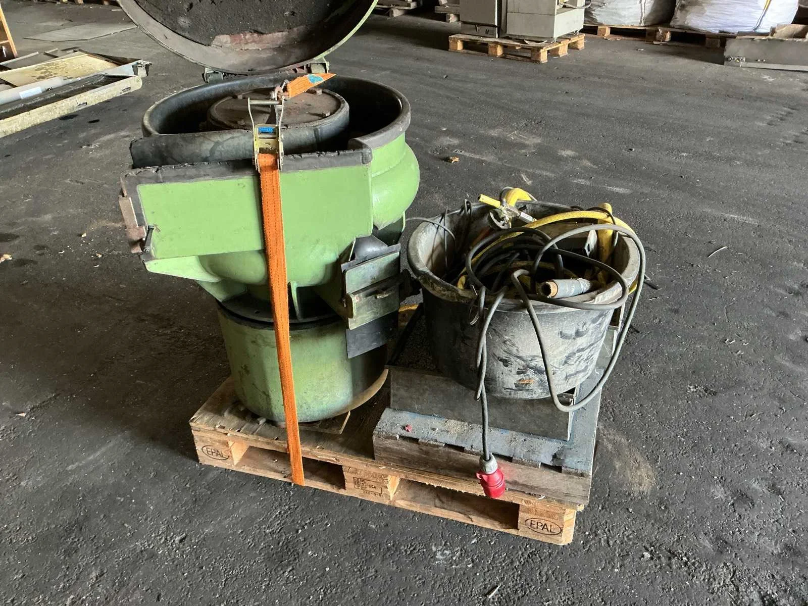 Diameter trommel 650 mm, voorzien van diverse polijststenen en waterbak met pomp Aansluiting: 380V