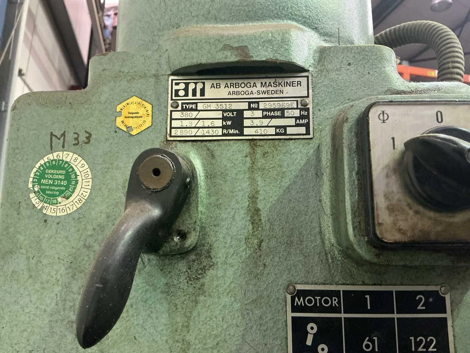Met automatische voeding en snelspankop Merk: Arboga Type: GM3512 Serienummer: 295969E Aantal snelheden: 12 Spindelsnelheid van n =: 61rpm Spindelsnelheid tot n =: 122rpm Opname mc: 4 Aansluiting: 380V Machinegewicht: 410kg