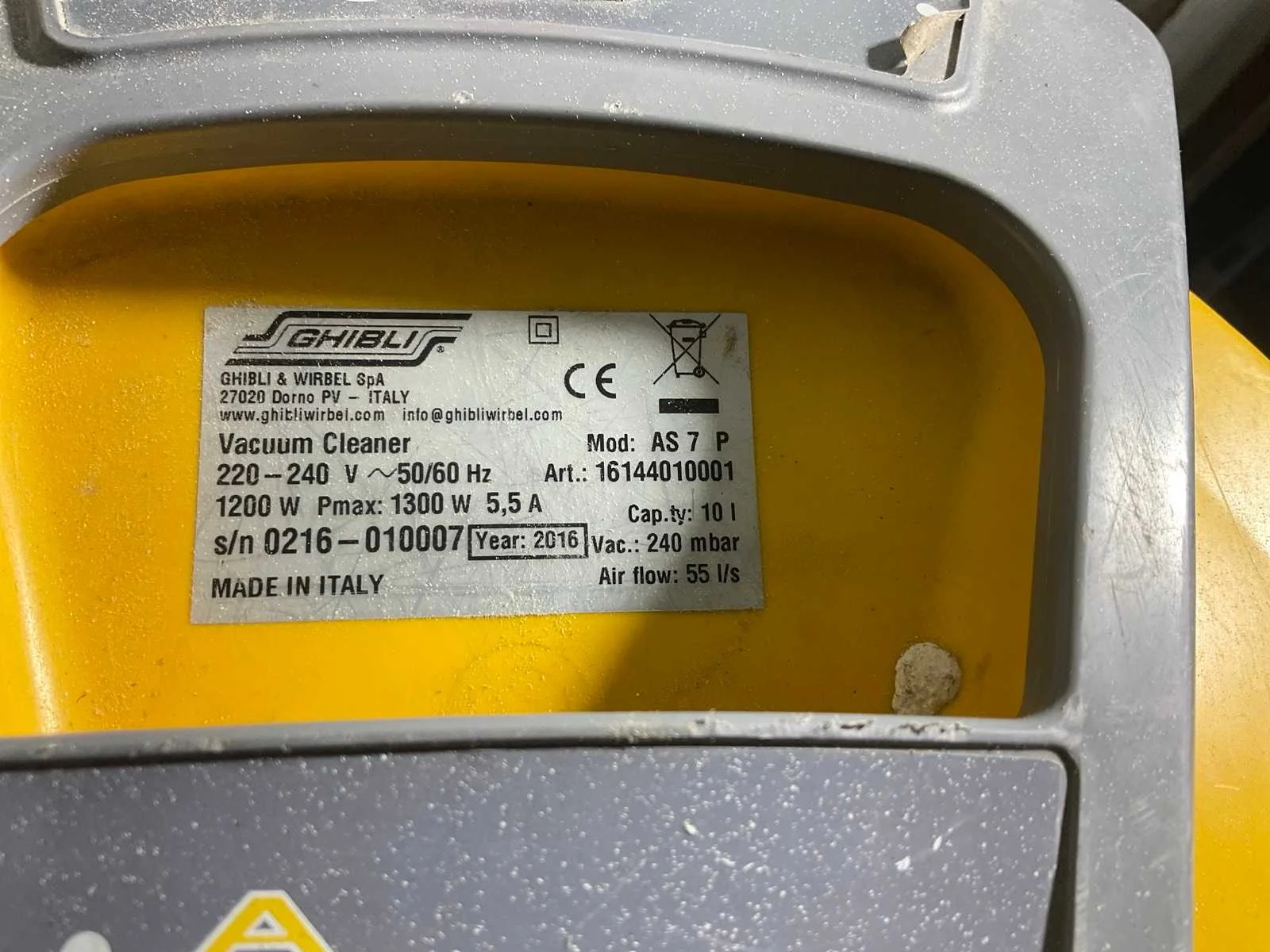 Bouwstofzuiger Ghibli AS7Pt-240 maar Merk: Ghibli Model: AS7P Bouwjaar: 2016 Vermogen: 1200W Spanning: 240V Kleur: Geel