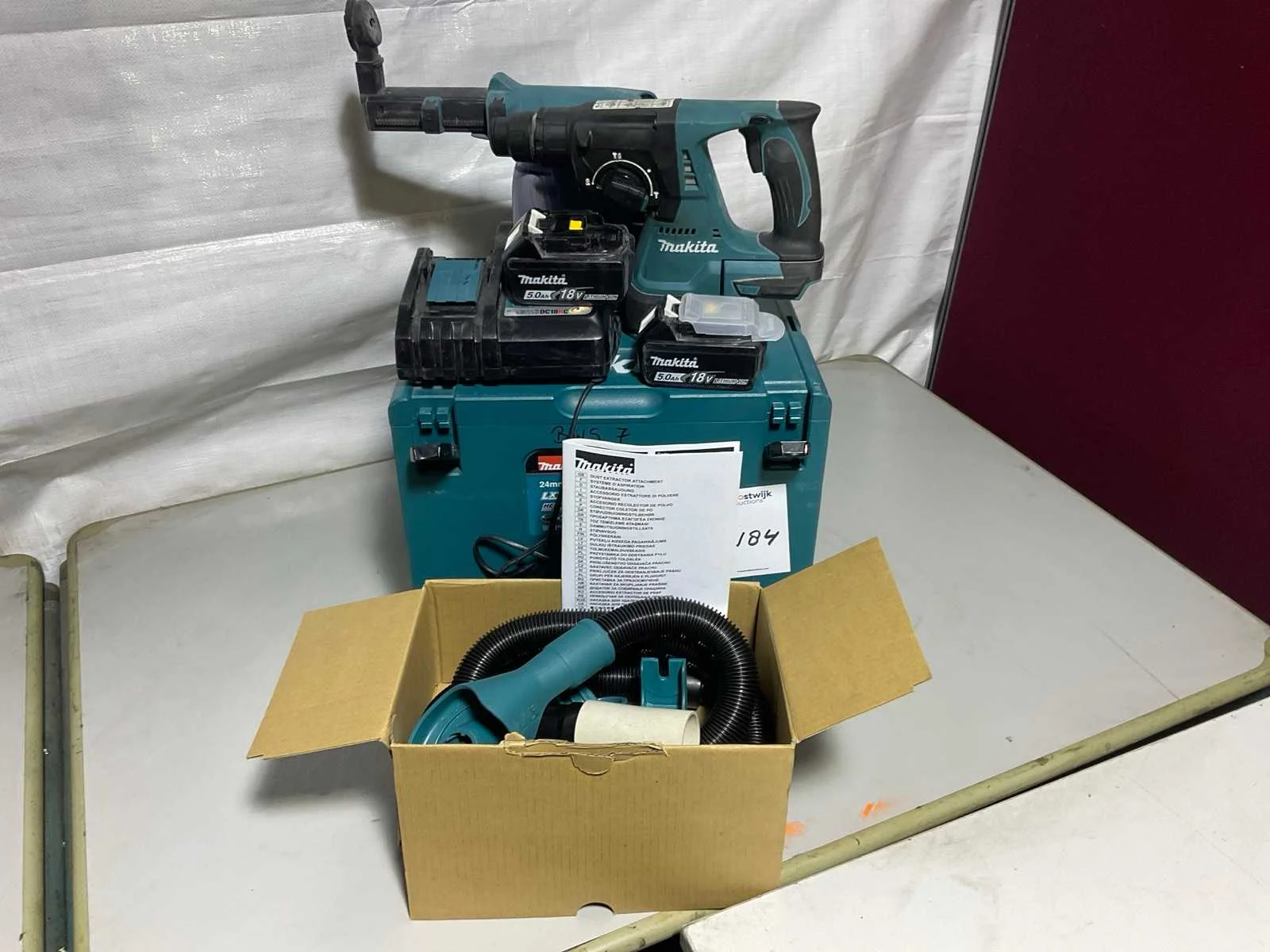 Boorhamer met afzuiging Merk: Makita Type: DHR 242 Bouwjaar: 2021 Aantal accu's: 2