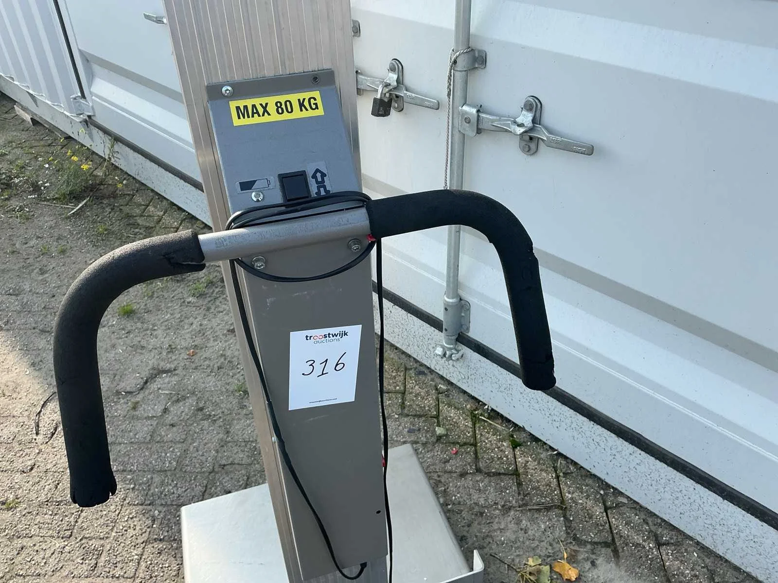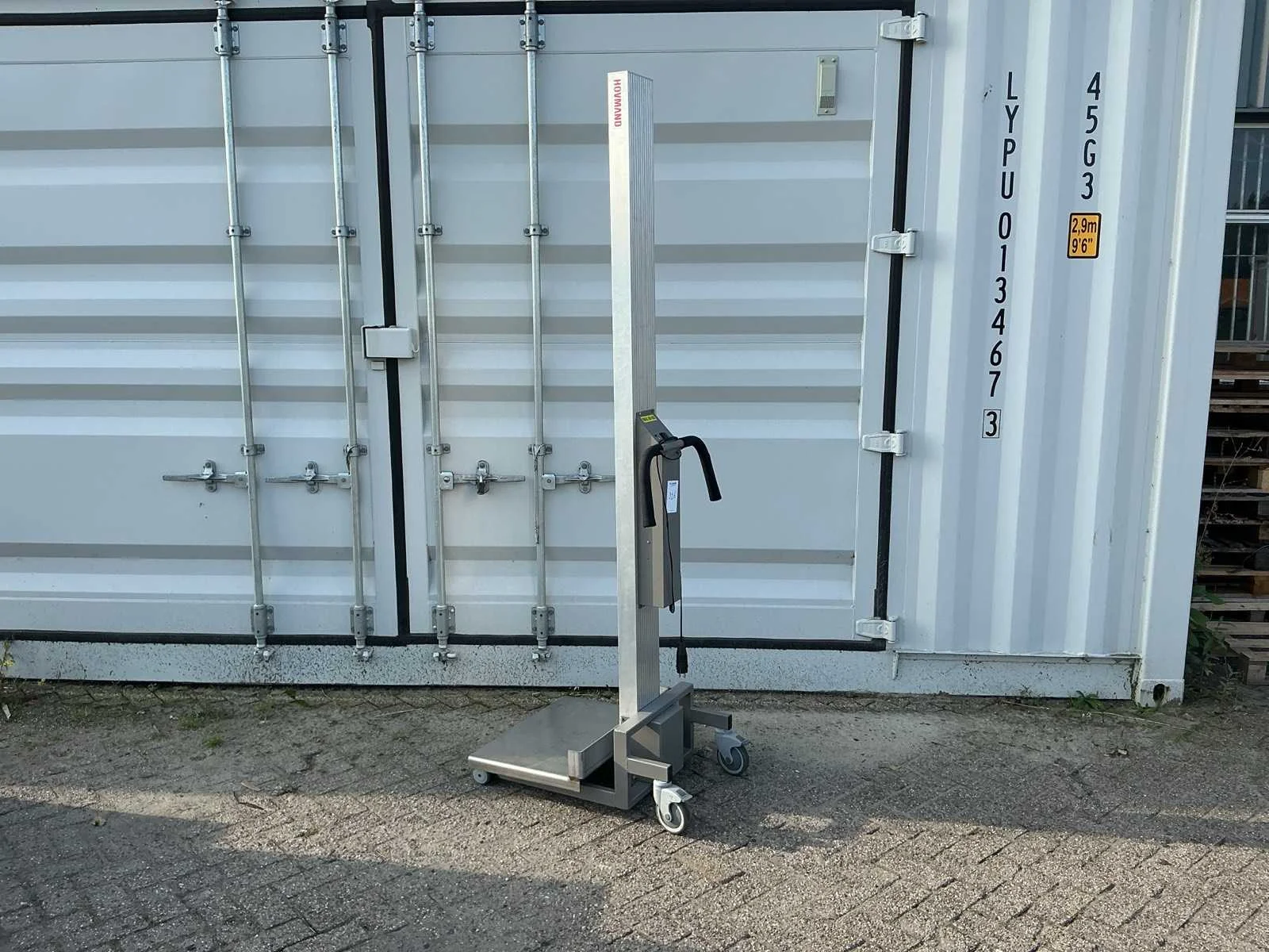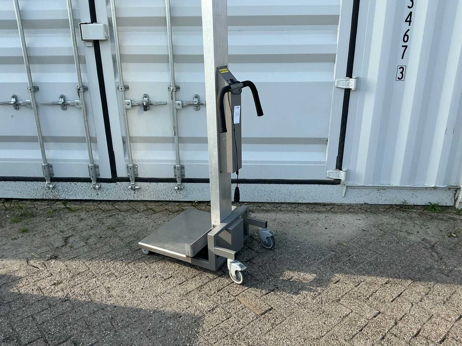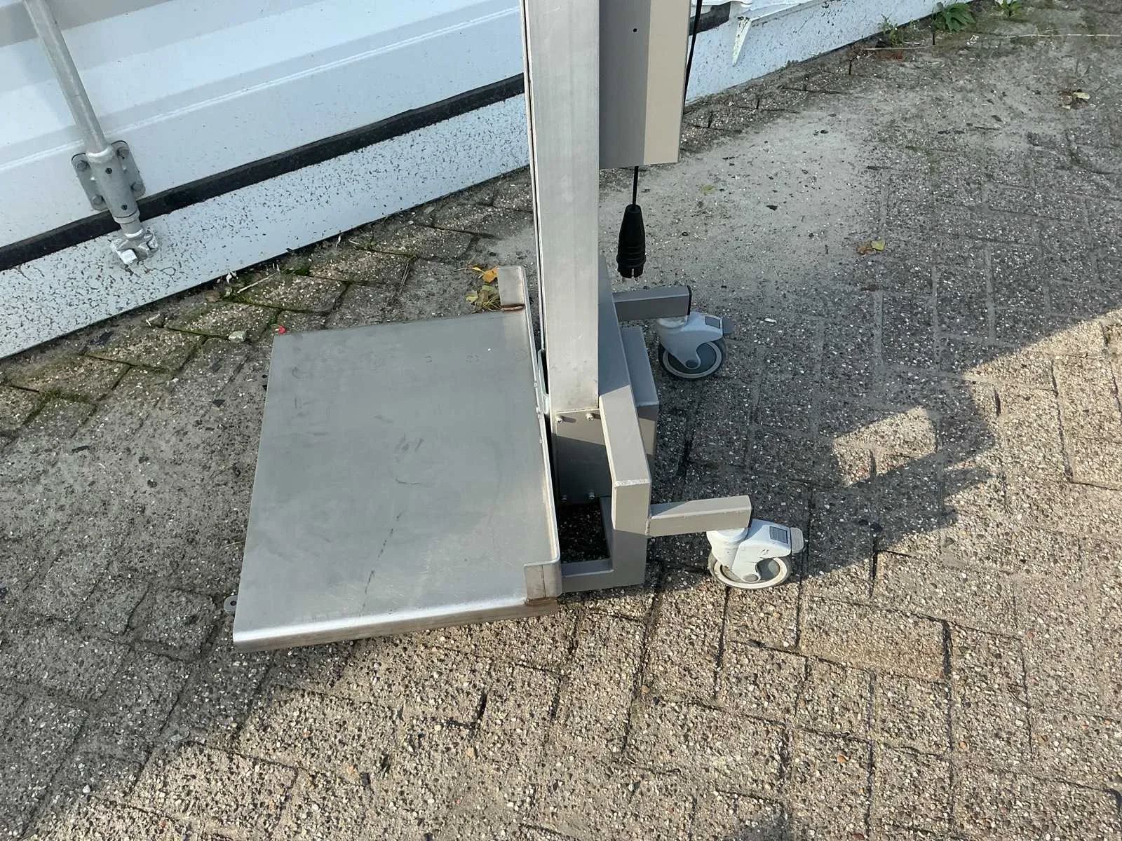 Accu Merk: Hovmand Plateau afm. l: 600mm Plateau afm. b: 450mm Elektrisch bediend: true Capaciteit.: 80kg Aansluiting: 230V Totale afmeting Hoogte: 2200mm