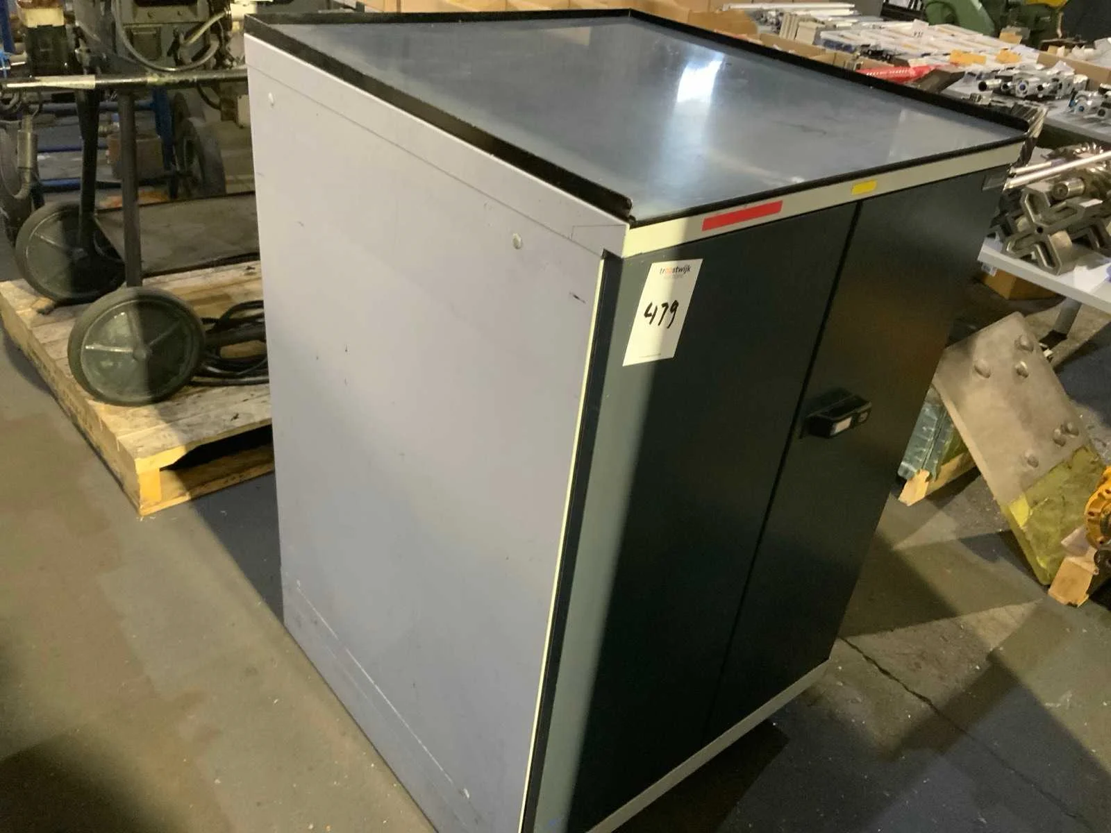 Lista twee laden kast Merk: Lista Model: Ladekast Kleur: Grijs Lengte: 75cm Breedte: 720cm Hoogte: 110cm Materiaal: Staal
