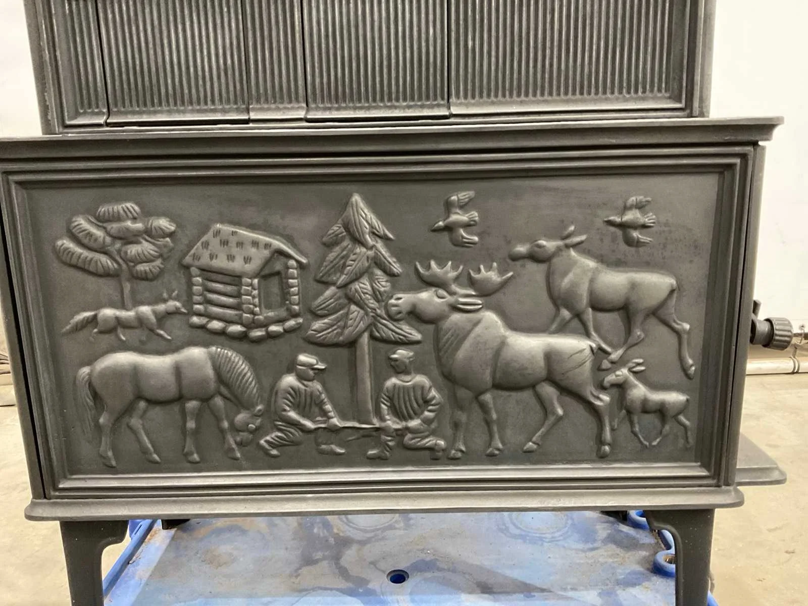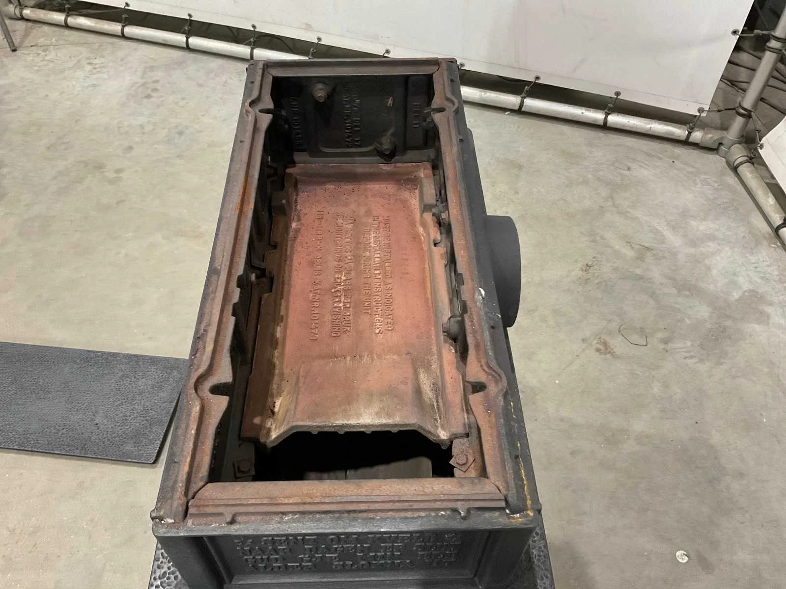Smeedijzeren allesbrander; geschikt voor hout en kolen Merk: Jotul Type: 118 N Achteraansluiting: true Vrijstaand: true Totale afmeting lxbxh: 720x345x72mm