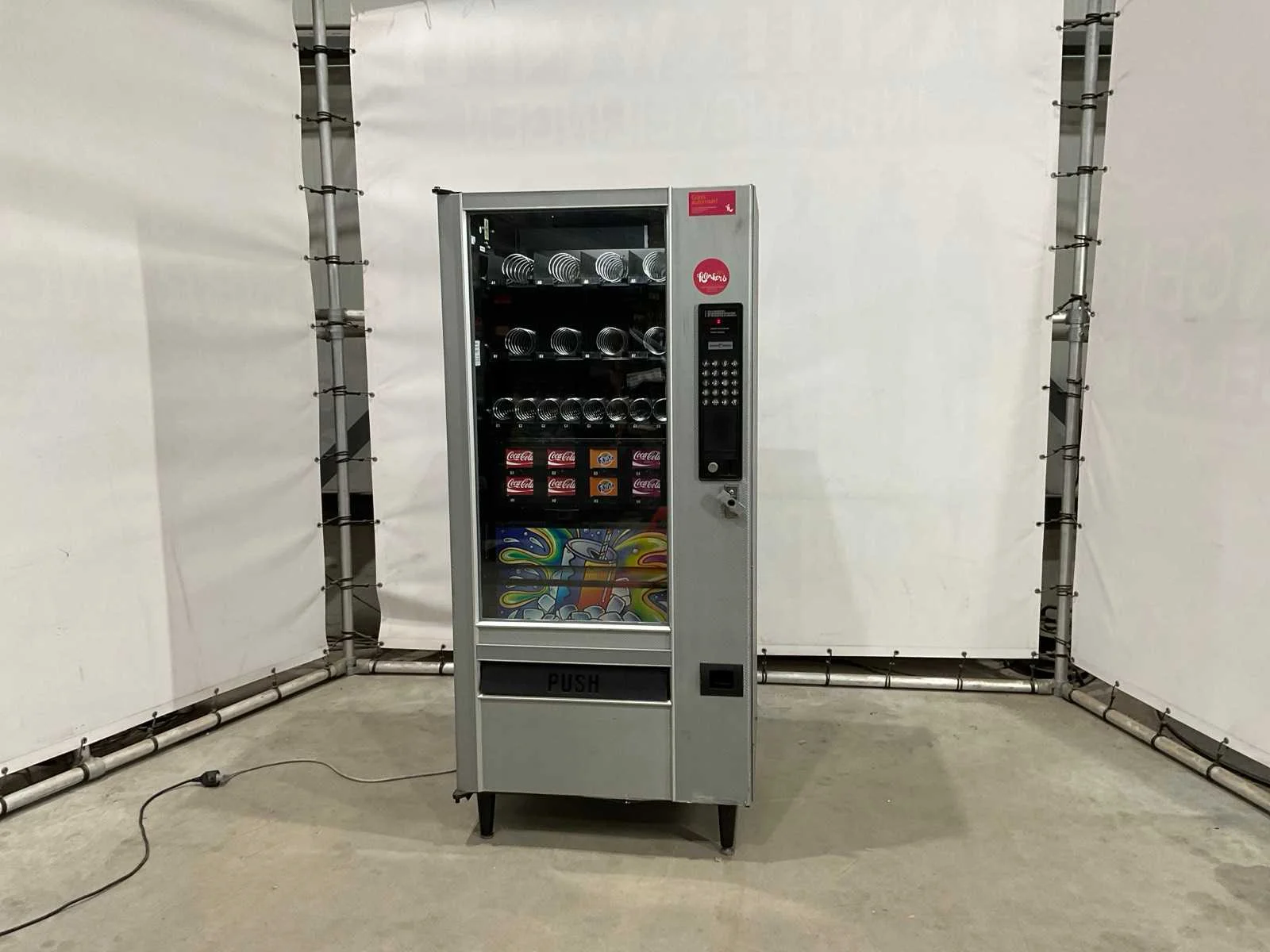 Zonder sleutel Merk: Automatic Products Model: Snack/can LCM5B CHILL Lengte: 70cm Breedte: 84cm Hoogte: 184cm