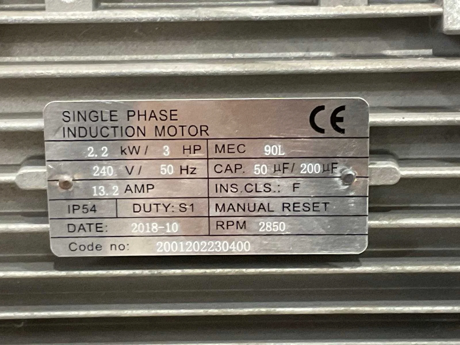 2.2 kW; 3 HP; 240 v; 50 Hz ; 13.2 amp; rpm 2850; mec 90 L Lengte: 25cm Breedte: 17cm Hoogte: 28cm