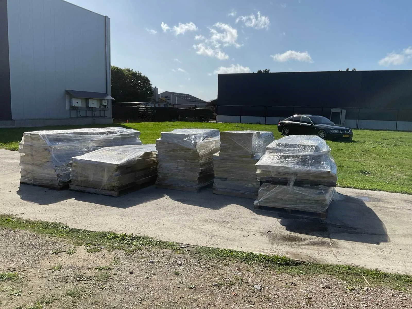 Kavel bestaat uit 6 pallets met diverse afmetingen isolatie materiaal ; dikte varieert van 6 tot 8 cm, ligt binnen opgeslagen