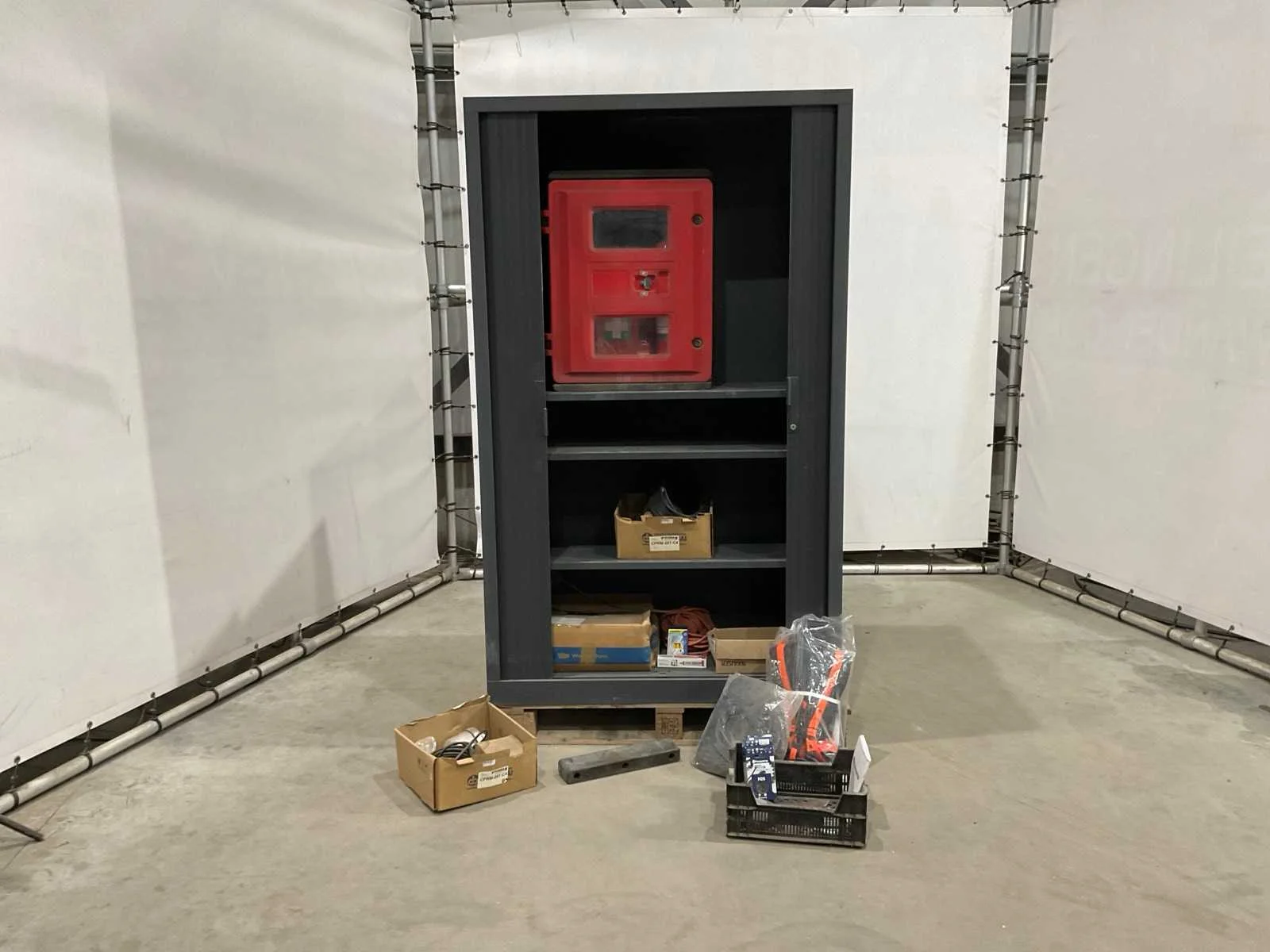 Kast bevat EHBO kast en diverse onderdelen Kleur: Donkergrijs Breedte: 120cm Hoogte: 195cm Diepte: 45cm