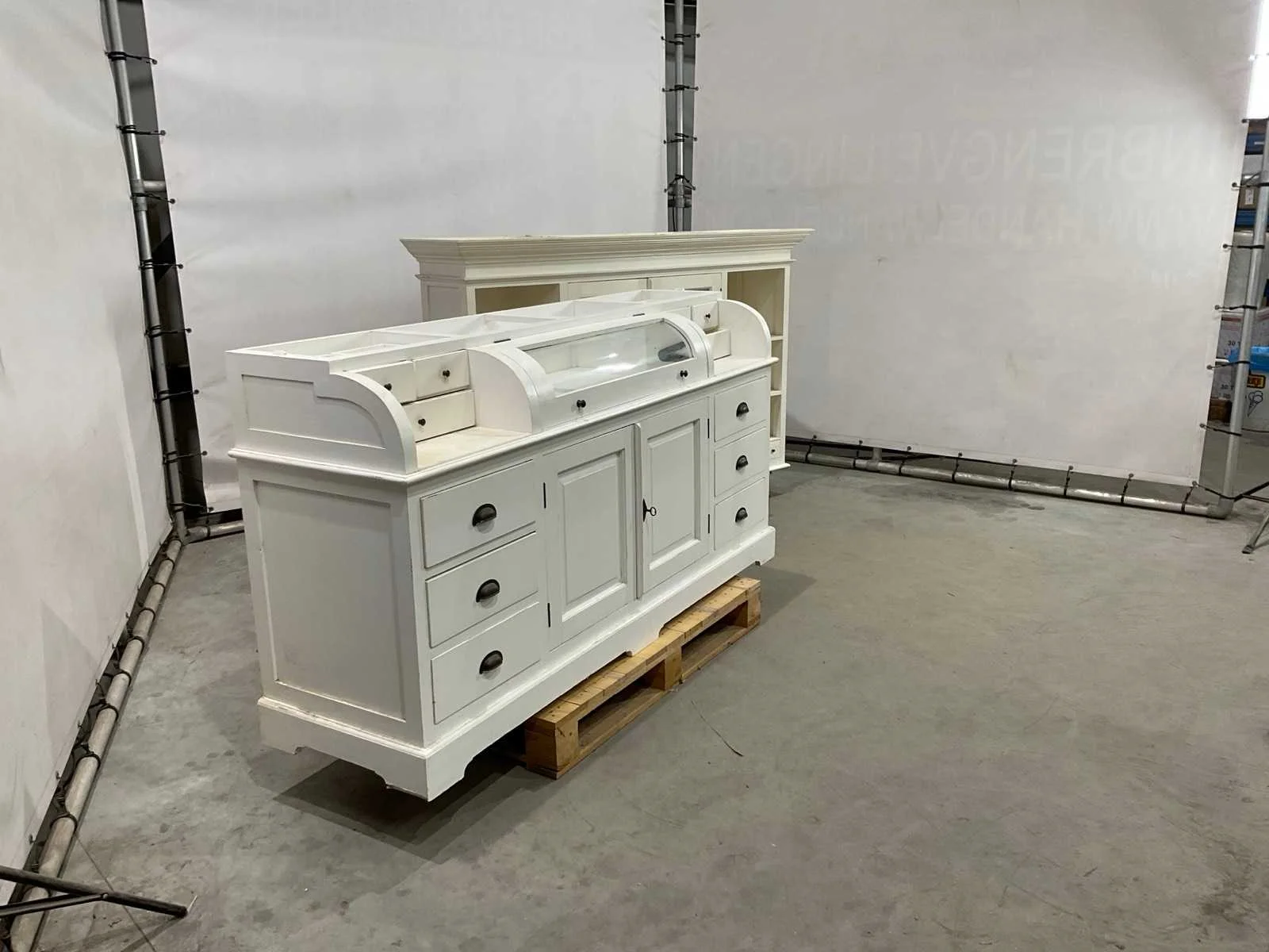1x circa 187 cm breed; 98 cm hoog; 55 cm diep; opzetstuk circa 201 cm breed; 118 cm hoog; 41 cm diep