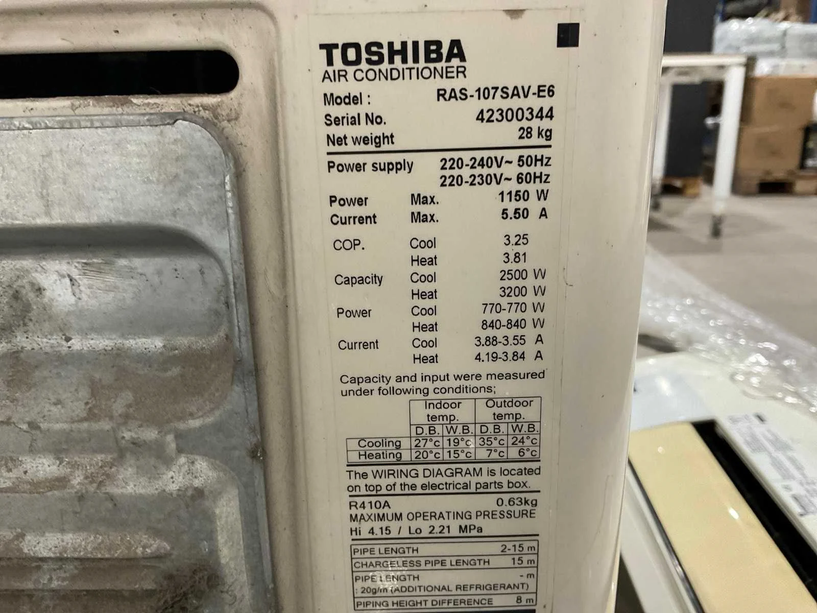 Merk: Toshiba Type: RAS-107SAV-E6 Split-unit: true