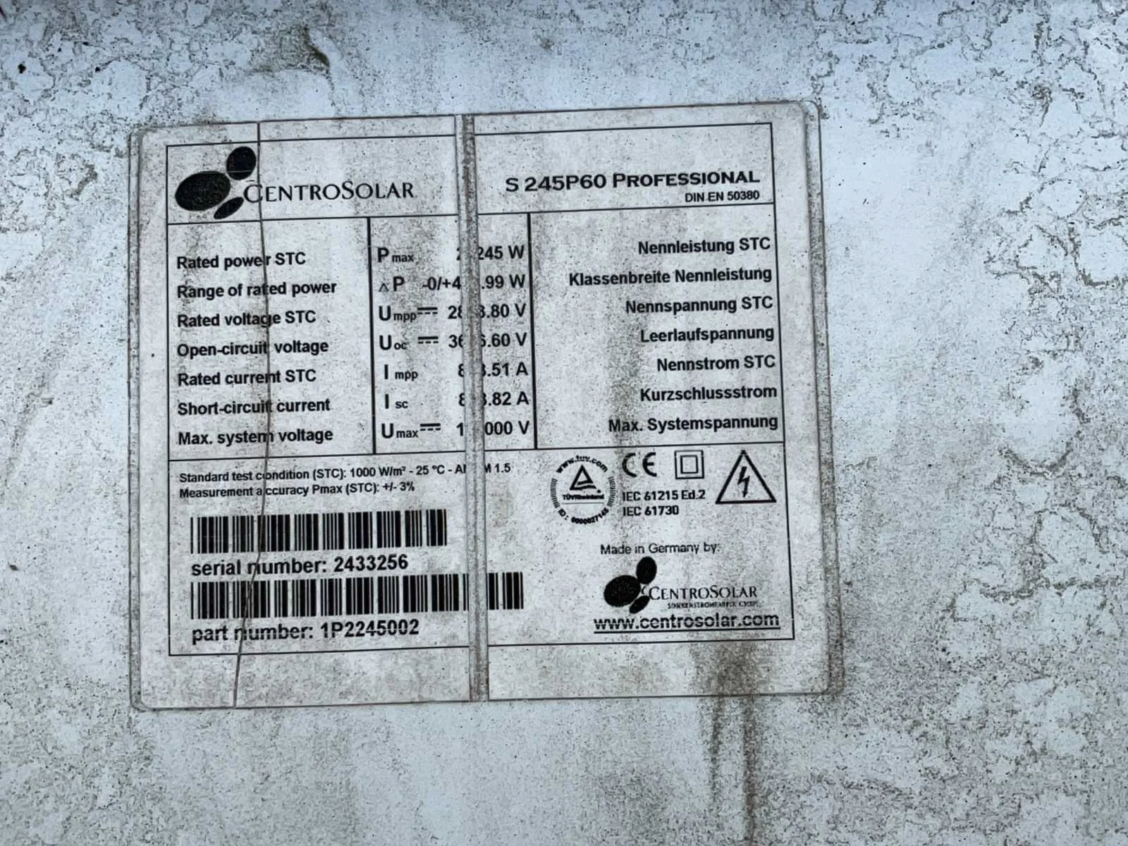 Met 8 betonnen steunen Merk: CentroSolar Totale afmeting L: 1645mm Totale afmeting Breedte: 995mm Totale afmeting Hoogte: 40mm