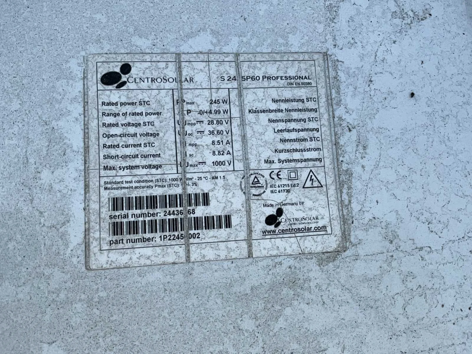 Met 8 betonnen steunen Merk: CentroSolar Totale afmeting L: 1645mm Totale afmeting Breedte: 995mm Totale afmeting Hoogte: 40mm