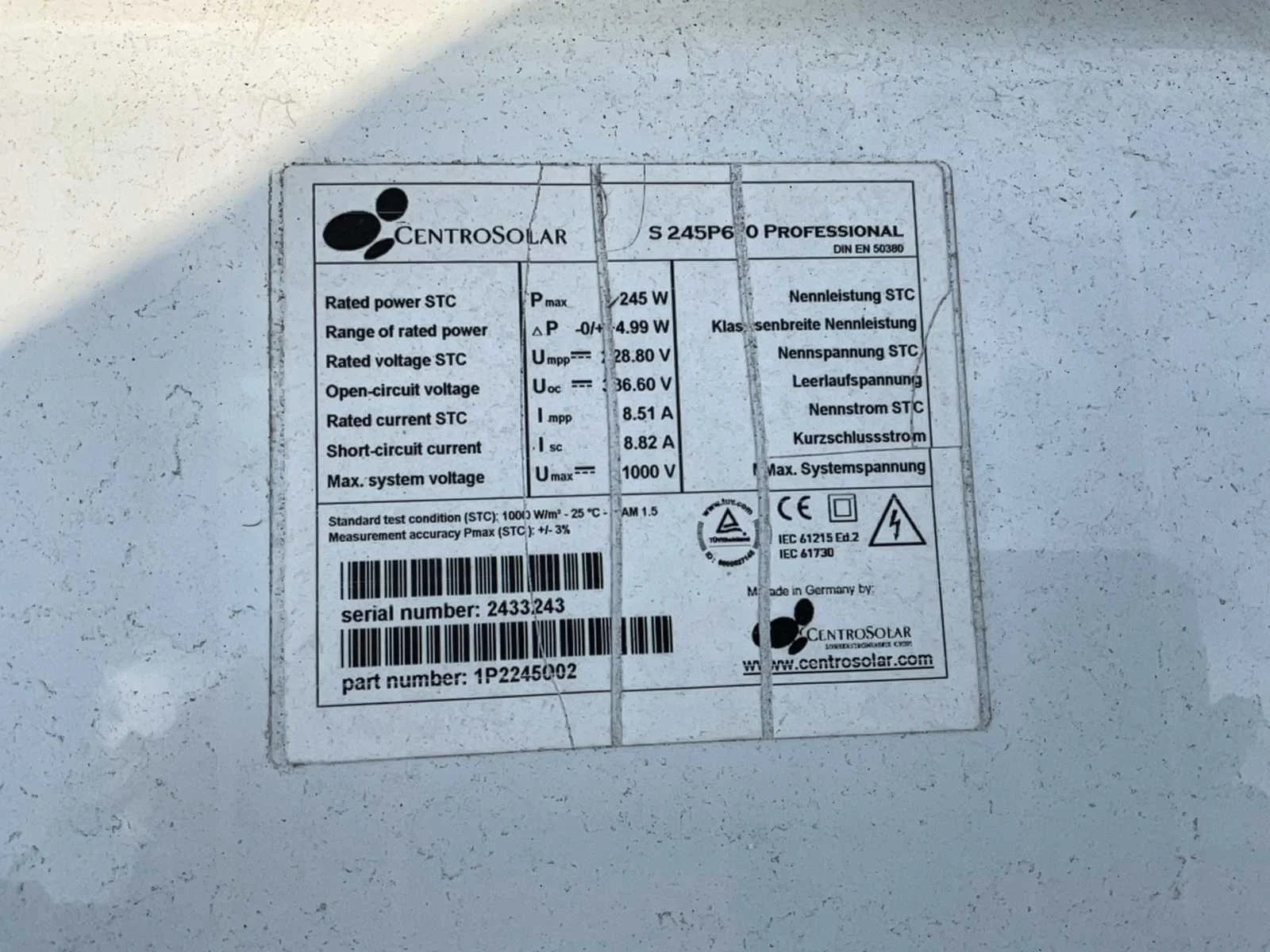 Centrosolar zonnepanelen met steunen (11x)