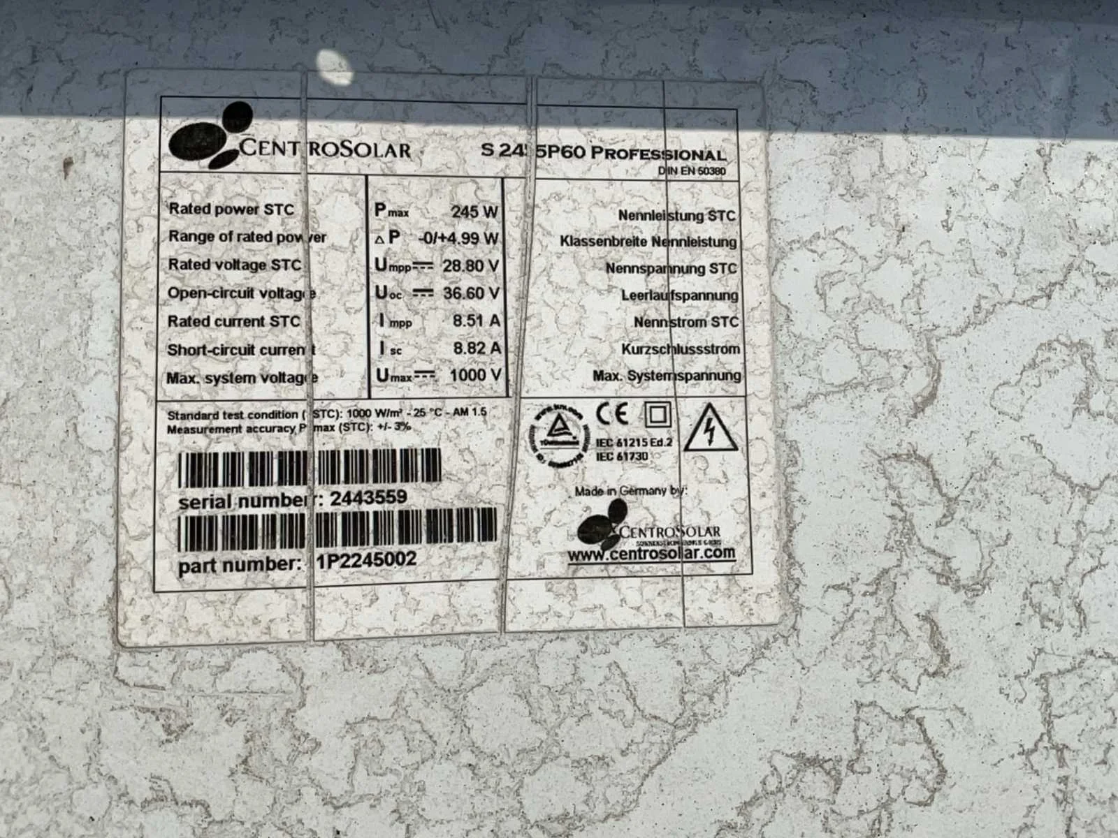 Merk: CentroSolar Totale afmeting L: 1645mm Totale afmeting Breedte: 995mm Totale afmeting Hoogte: 40mm