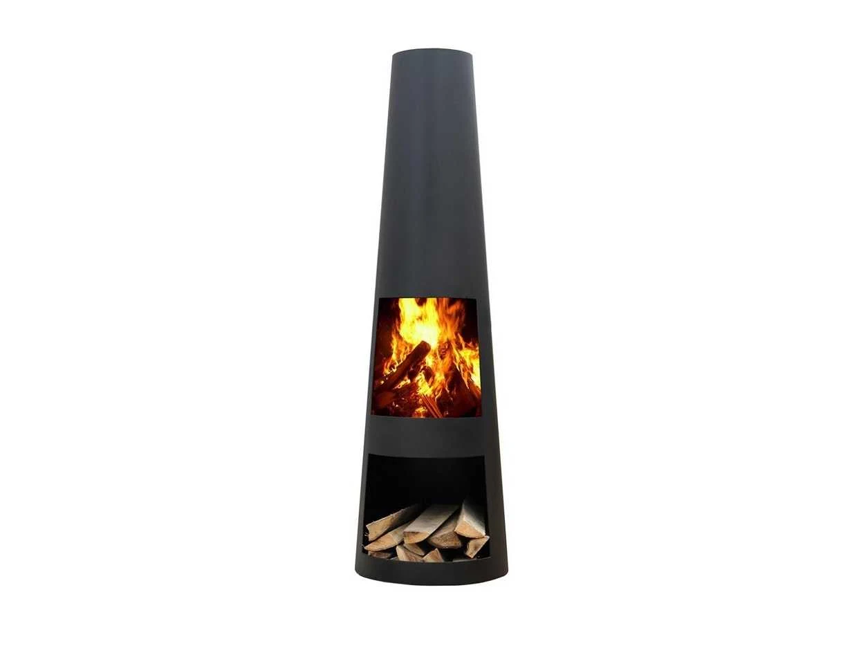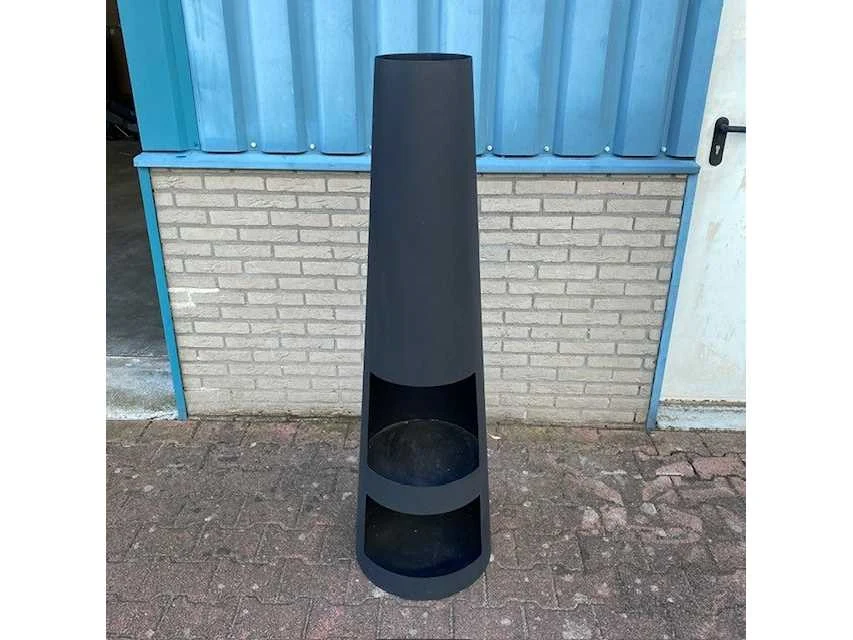 145cm hoog, zwart gecoat. Moderne en sfeervolle tuinhaard. Hoogwaardig en robuust plaatmateriaal van 1,6mm dik staal en volledig gelaste constructie. ongebruikt in doos., exclusief hout, Doos kan wat transportschade hebben Merk: Malaga Kleur: zwart Breedte: 42cm Hoogte: 145cm Materiaal: staal