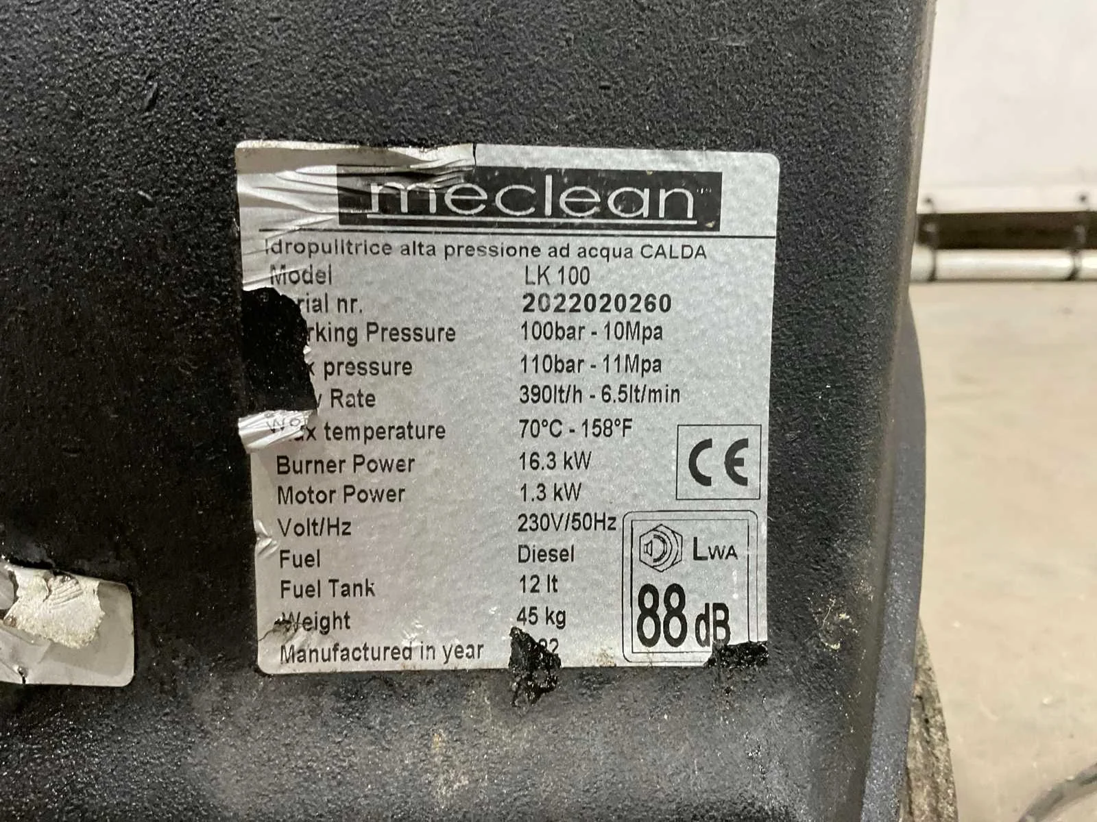 Werking onbekend Merk: Meclean Type: LK100 Serienummer: 2022020260 Dieselgestookt: true Mobiel: true Aansluiting: 220V Eigen gewicht: 45kg