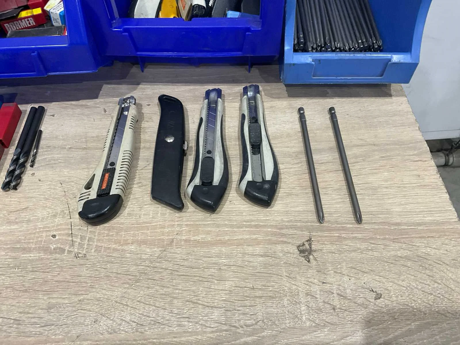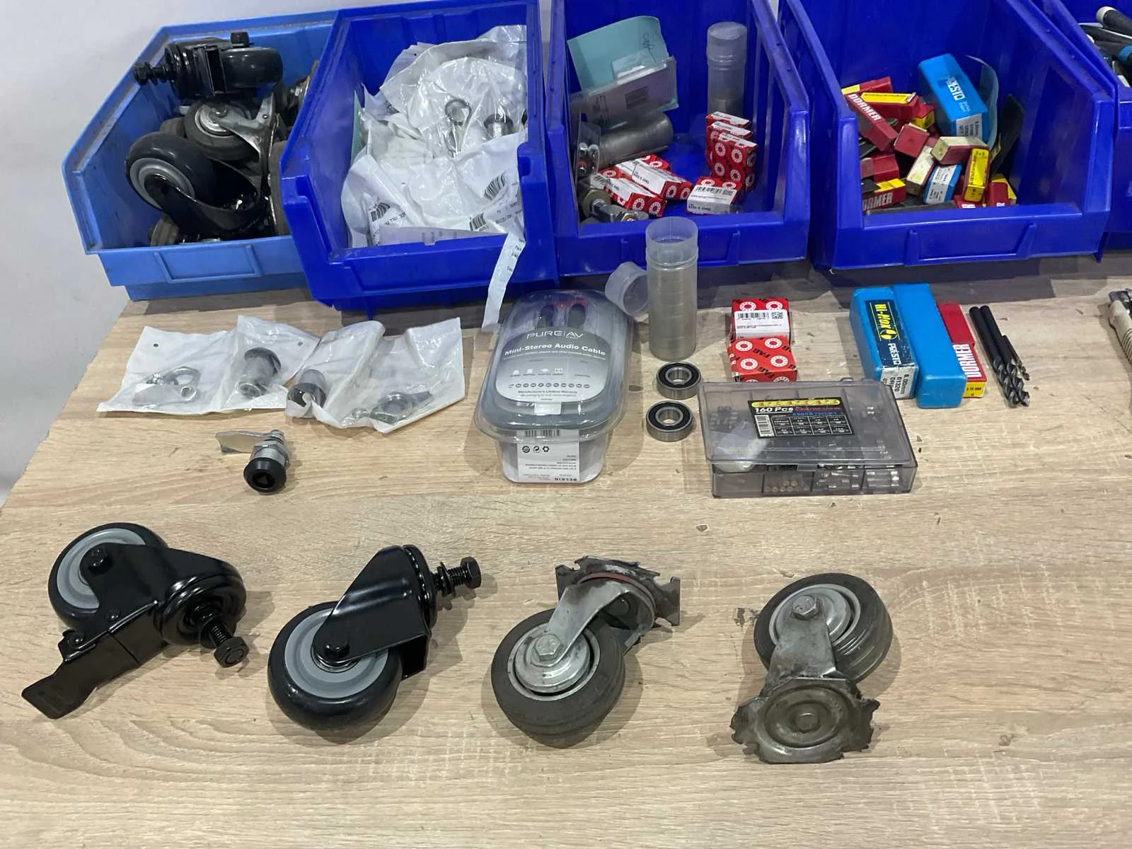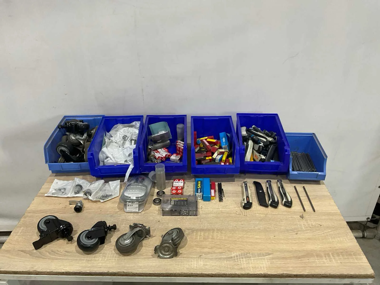 Kavel bevat wieltjes; bitjes lang; stanleymessen; kantel sloten; kogellagers; diverse boren