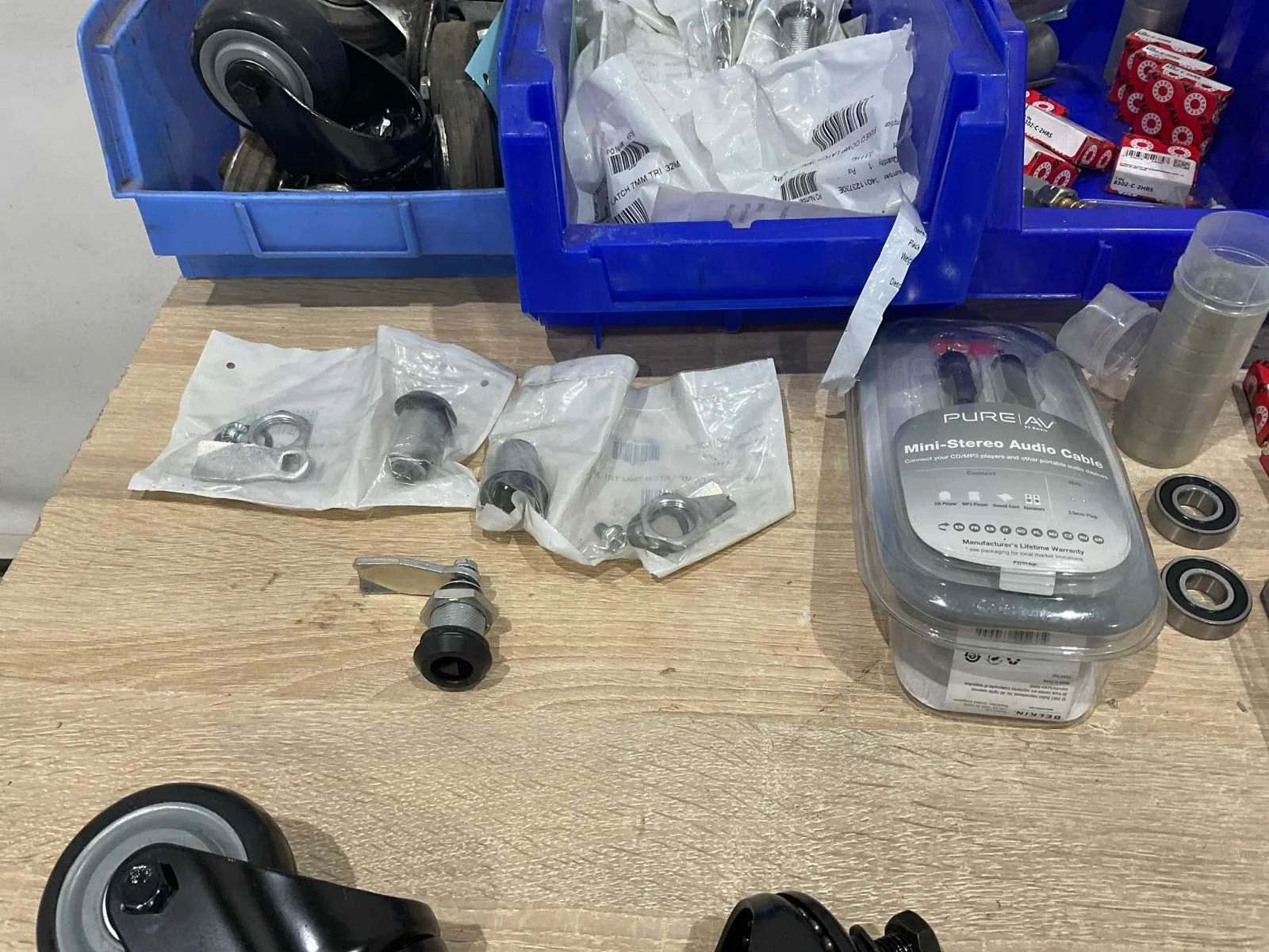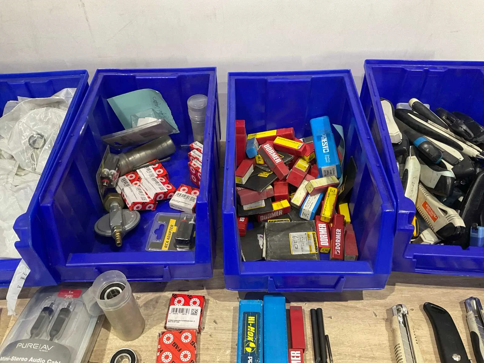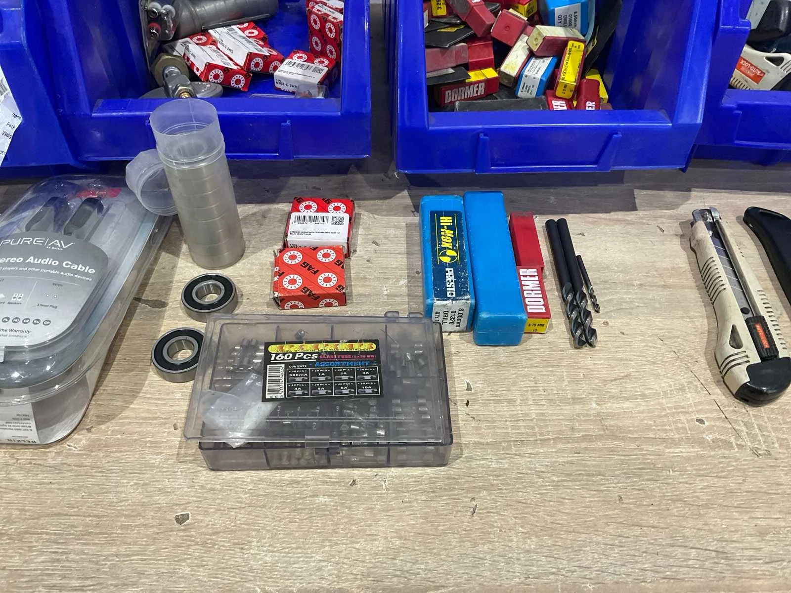 Kavel bevat wieltjes; bitjes lang; stanleymessen; kantel sloten; kogellagers; diverse boren