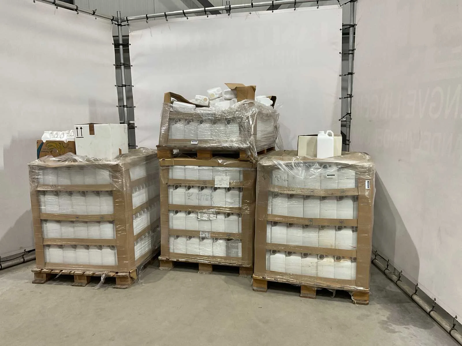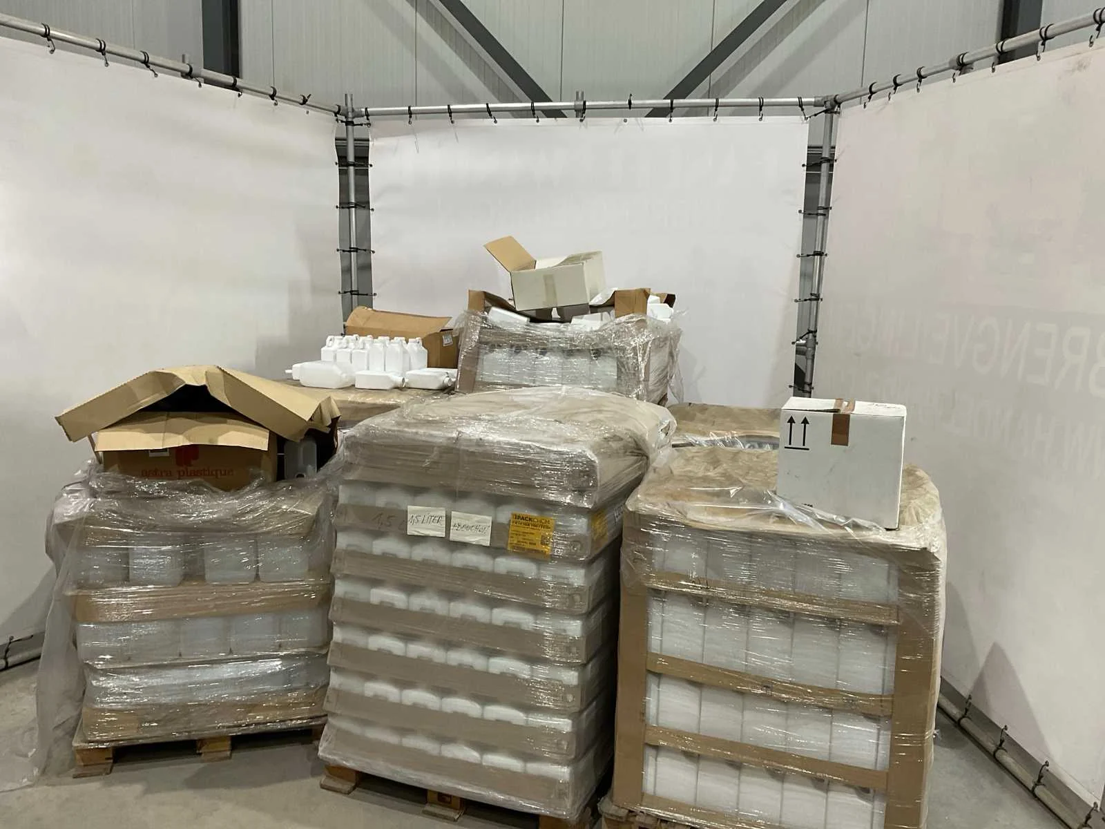 Circa 546 containers van 1,5 liter; circa 1008 containers van 2 liter; circa 315 containers van 5 liter