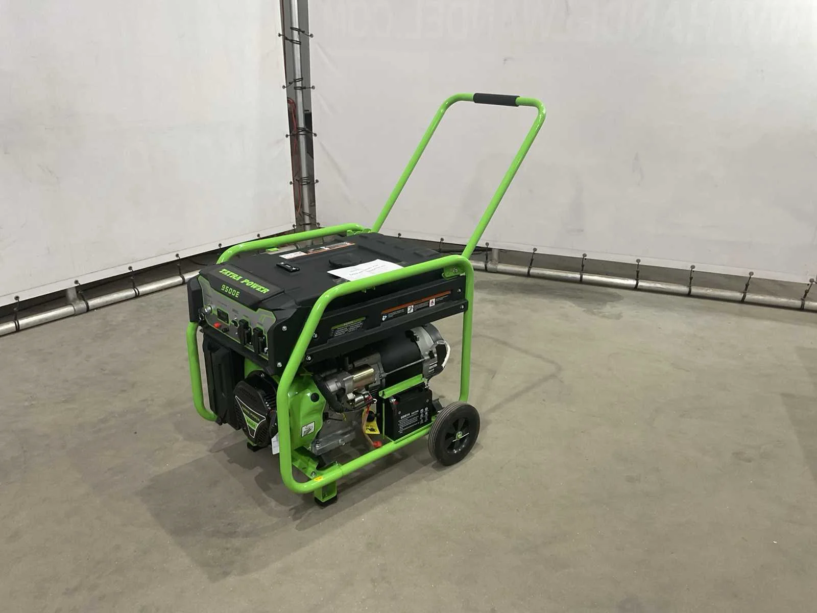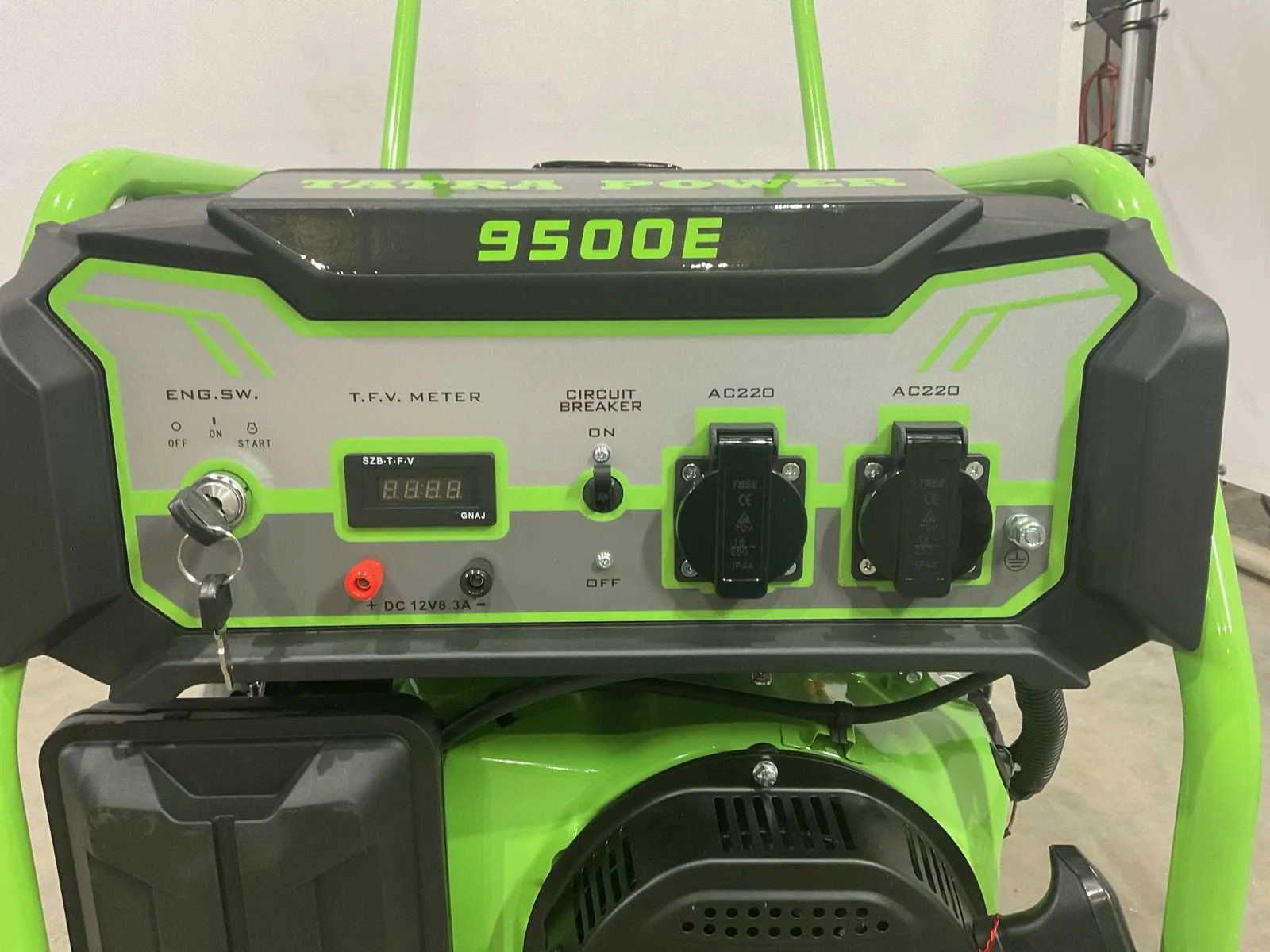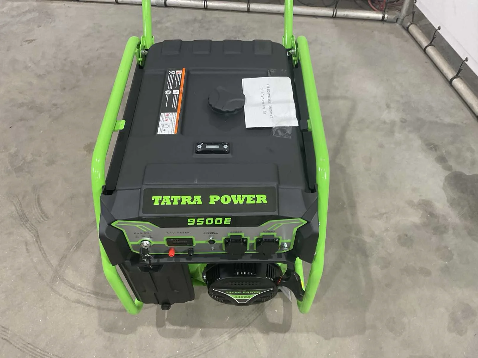 Elektrische start; 445 cc; circa 68 cm lang; 51 cm breed; 67 cm hoog; ongebruikt Merk: Tatra Power Type: 9500E Benzine: true Mobiel: true