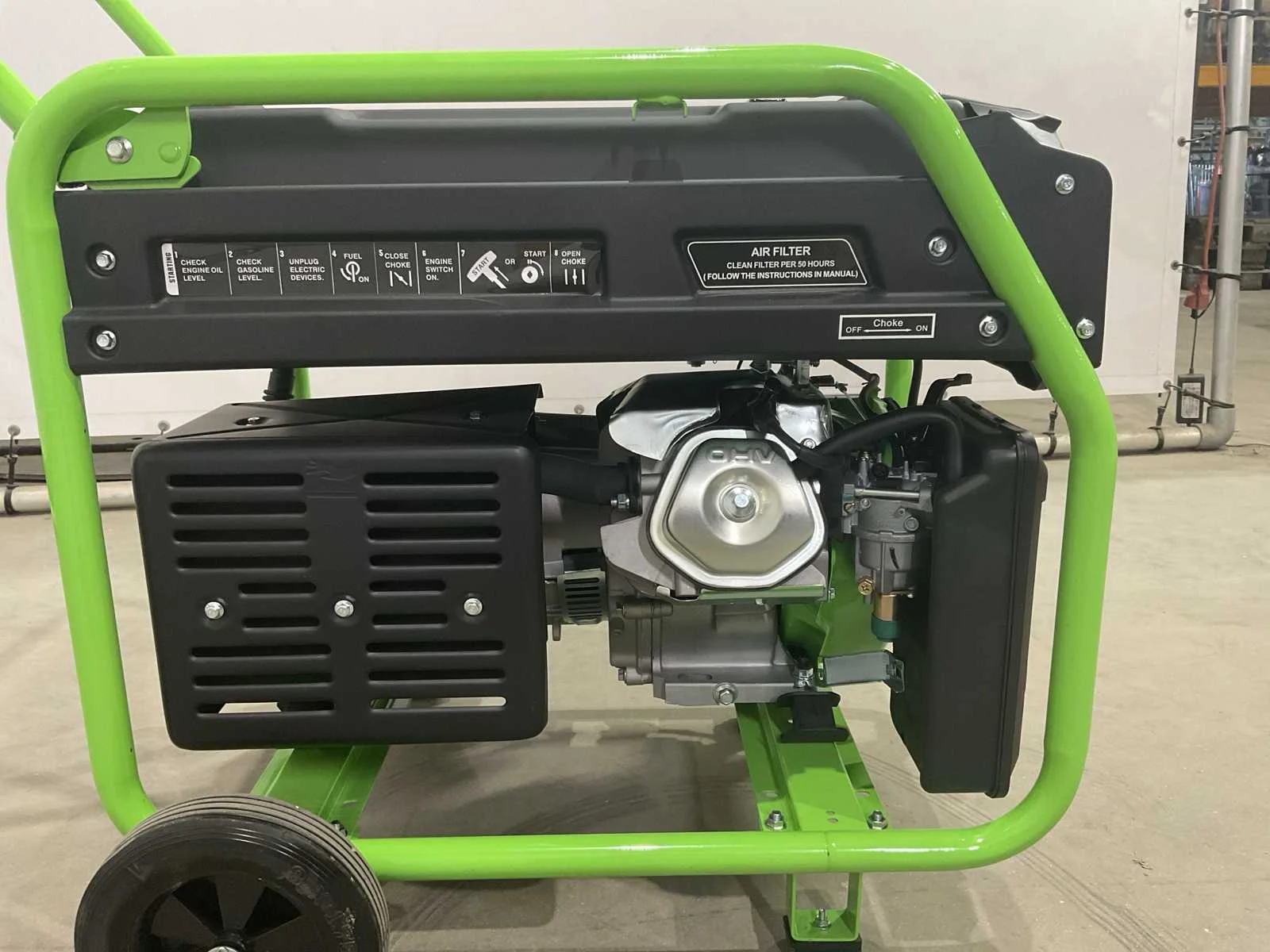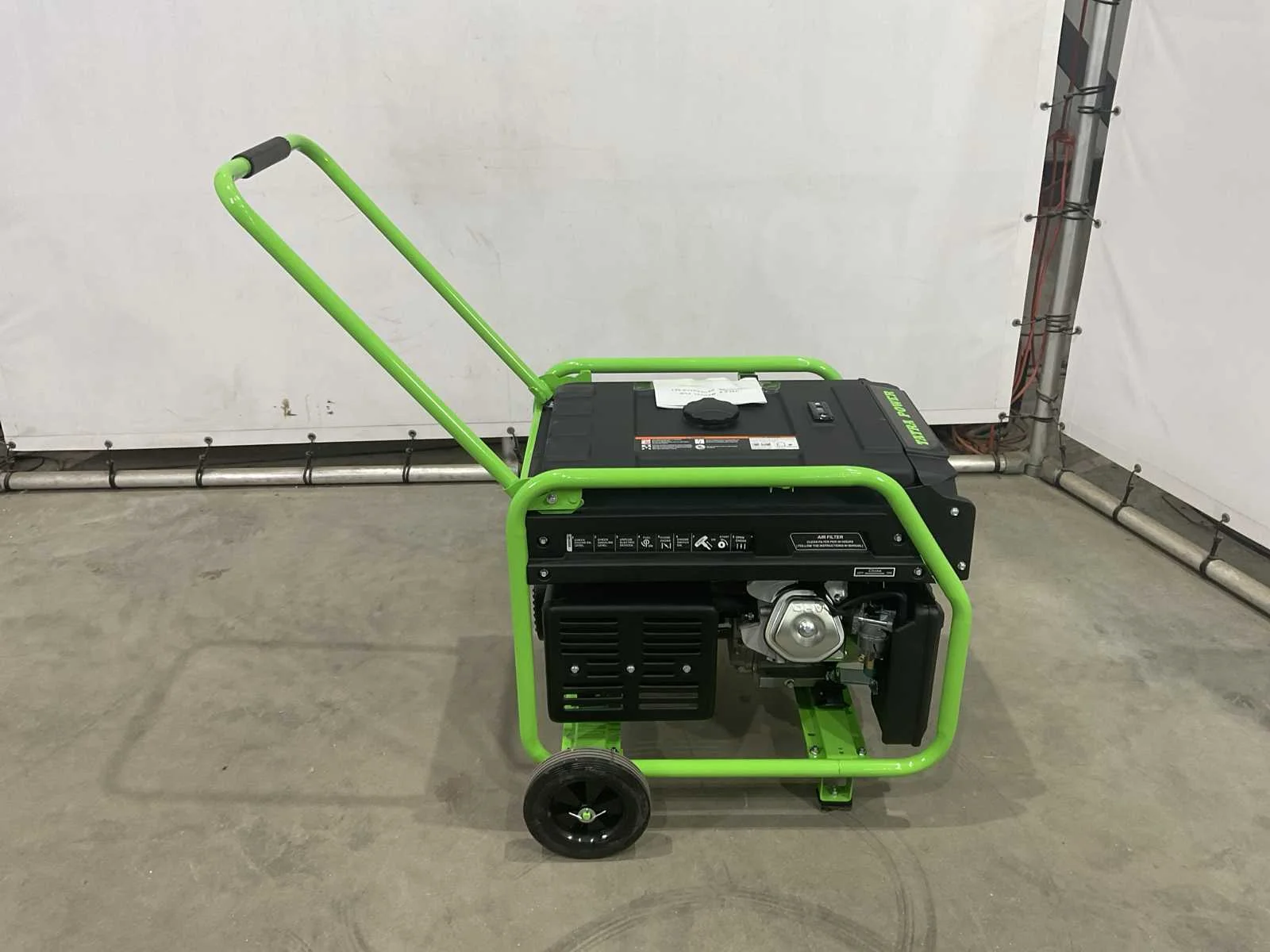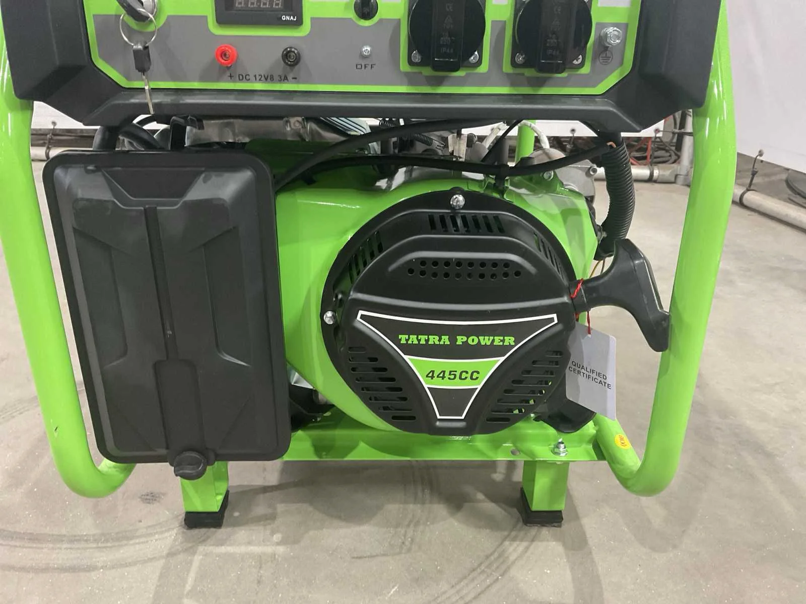 Elektrische start; 445 cc; circa 68 cm lang; 51 cm breed; 67 cm hoog; ongebruikt Merk: Tatra Power Type: 9500E Benzine: true Mobiel: true