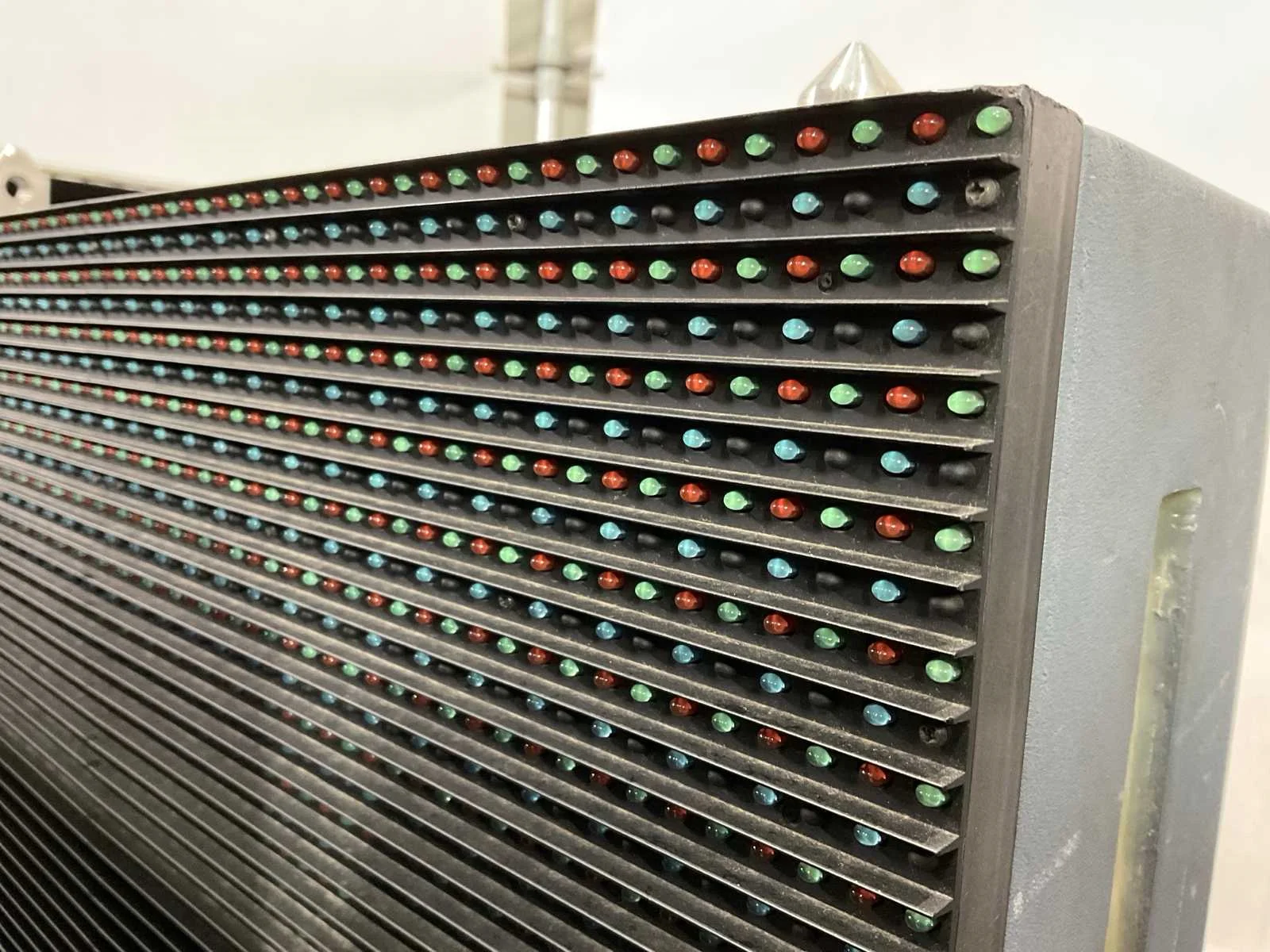 Afmetingen ledscherm circa 102 cm lang; 14 cm breed; 75 cm hoog; kavel bestaat uit 10 kisten met elk 3 led schermen Merk: Lighthouse Type: R16i/0-|| Serienummer: LH0105315 Met koffer: true Totale afmeting L: 1100mm Totale afmeting Breedte: 930mm Totale afmeting Hoogte: 1020mm