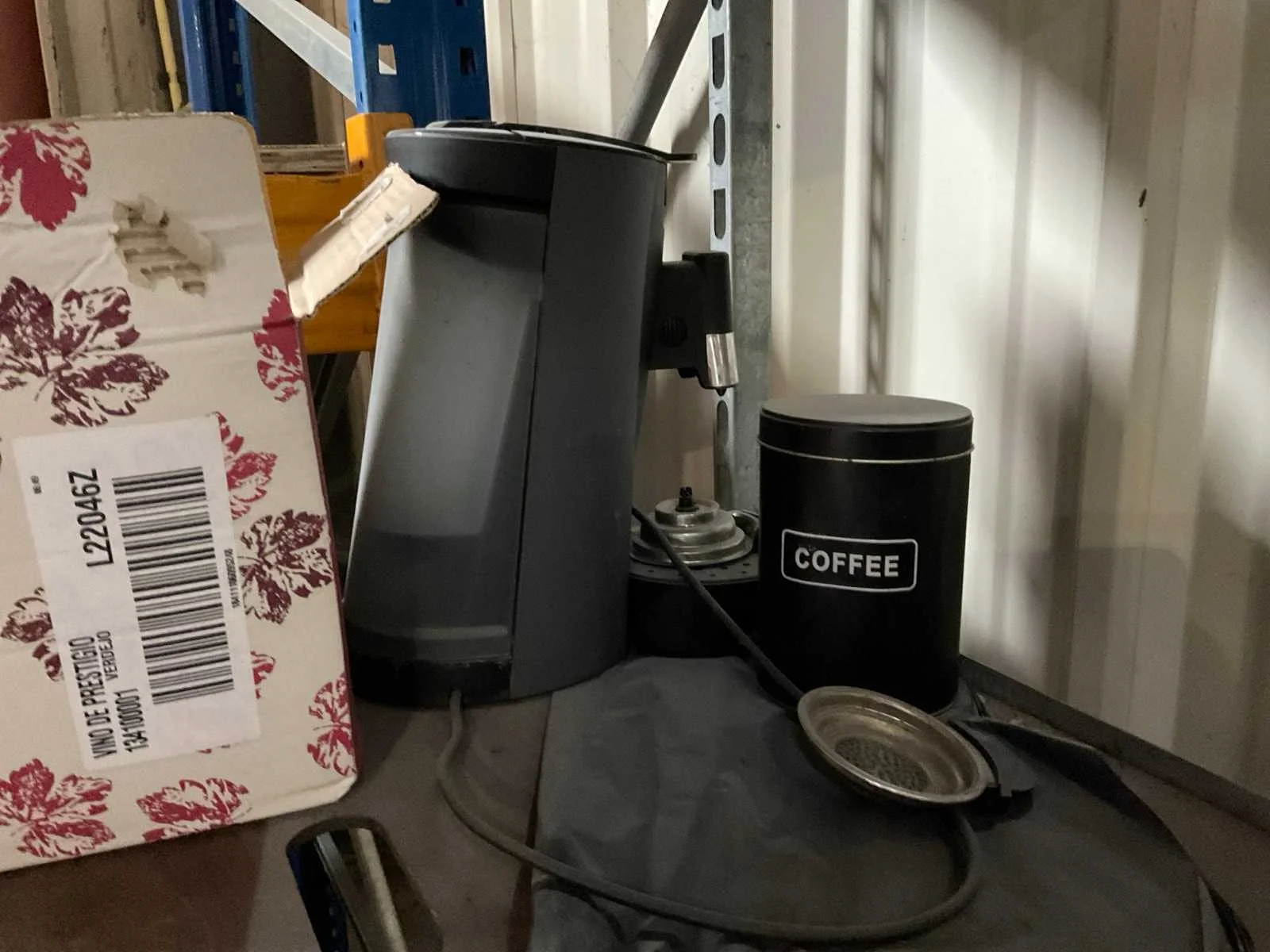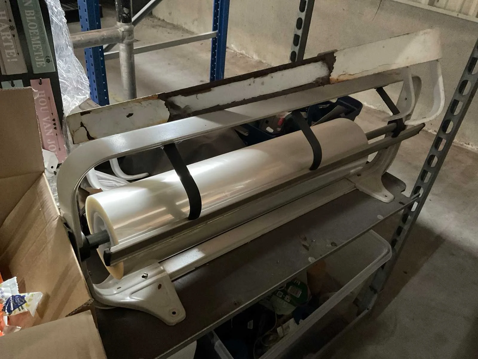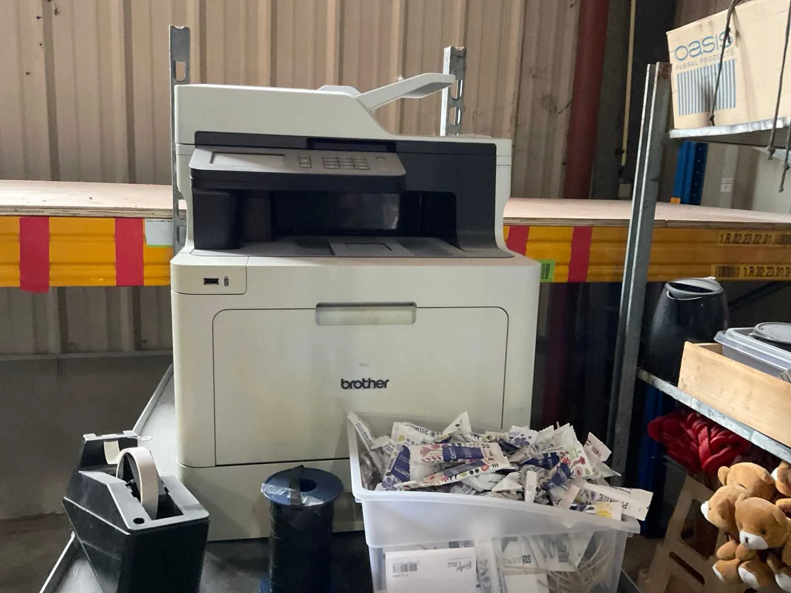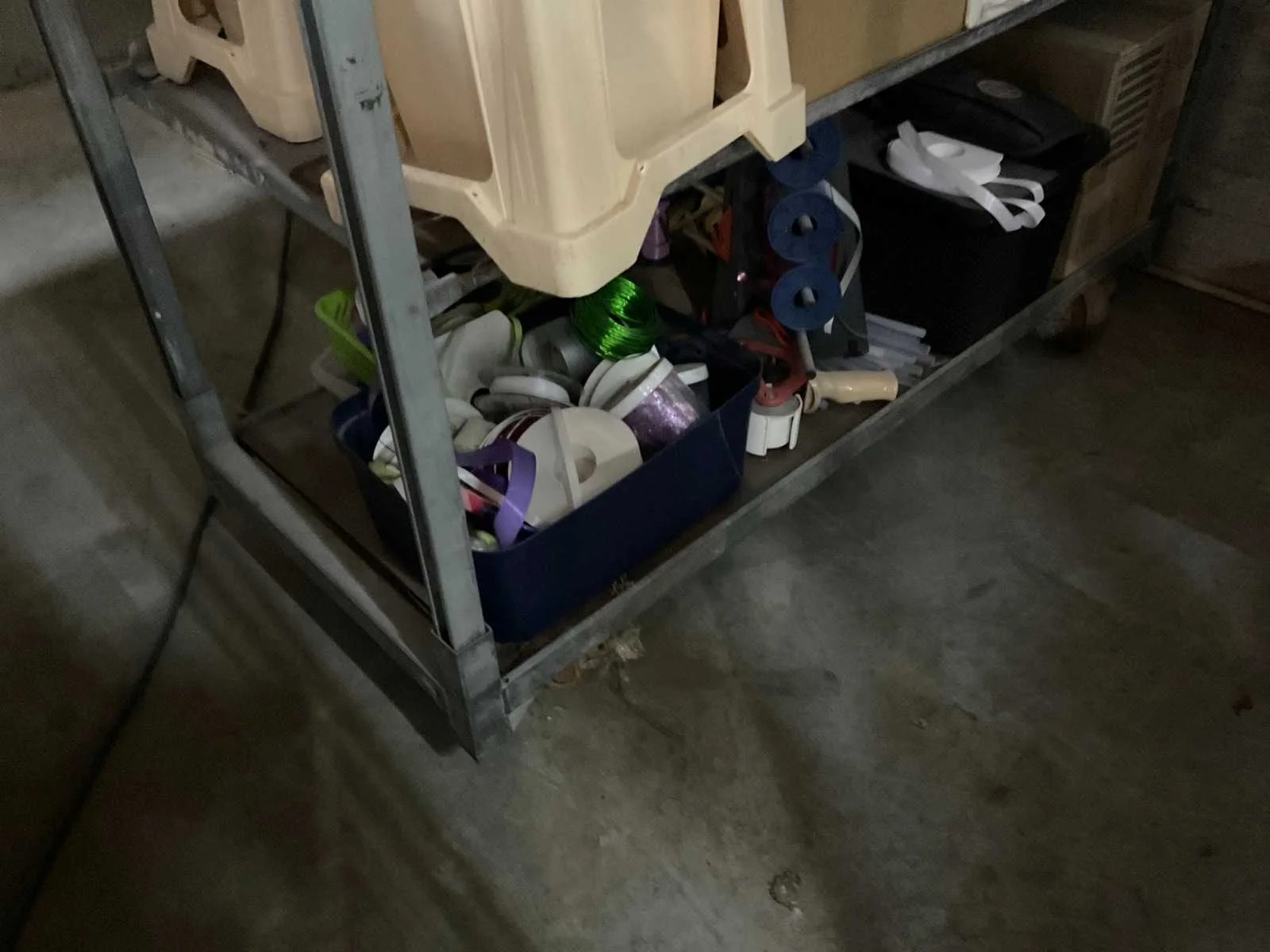 7 rekken met allerlei decoratie materiaal; kantoor inventaris; afkomstig uit bloemen winkel