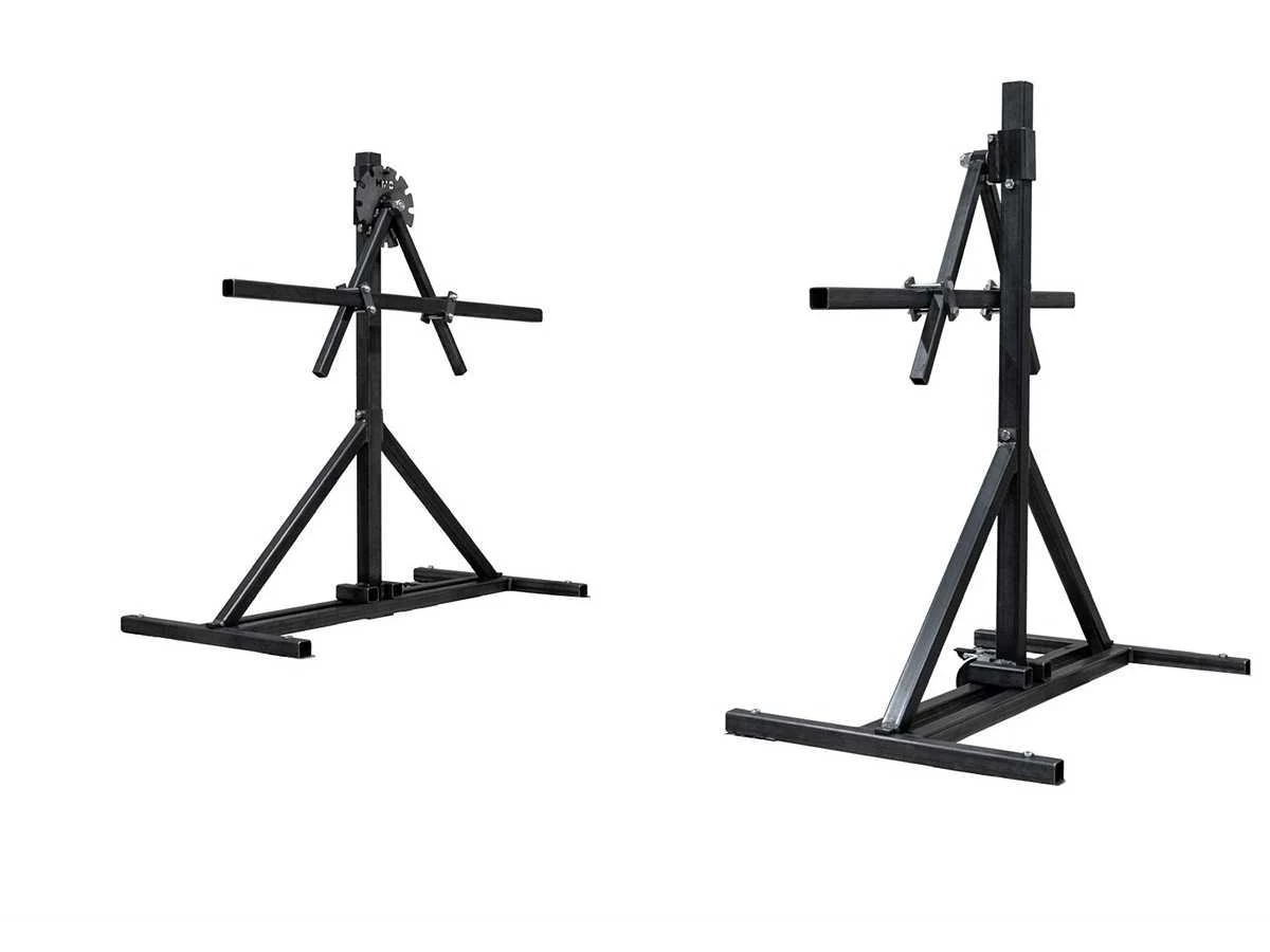Deze Basic Kantelbrug is geschikt voor auto, boot, trailer of groot werkstuk tot 800KG. Deze kantelbrug is zeer geschikt voor alle type auto's. Met de Restauratie-kantelbrug Basic kunt U een voertuig gemakkelijk met een hand 360 graden rond draaien en op iedere 30 graden vastzetten. Deze restauratie-kantelbrug Basic is geheel demontabel en vervoerbaar in bijna iedere personenauto. Tevens kunt U dan na Uw werkzaamheden de Kantelbrug Basic makkelijk opbergen onder een werkbank zodat U voldoende ruimte overhoudt voor overige werkzaamheden. De restauratie-kantelbrug Basic is extra sterk geconstrueerd Diverse autobody’s hebben al in de restauratie-kantelbrug gehangen van Porsche tot zelfs een Vrachtwagen-cabine. Normaal gesproken wordt de auto bevestigd aan de bumpersteunen, maar hij kan natuurlijk ook op andere plekken bevestigd worden. Ook is er een gespoten versie van de Kantelbrug Basic leverbaar in iedere gewenste RAL kleur. De Kantelbrug Basic is NEN-EN-ISO 12100: 2006 gecertificeerd En is ontworpen en gebouwd in overeenstemming met de eisen van de machinerichtlijn 2006/42/EG Model zonder zwenkwielen