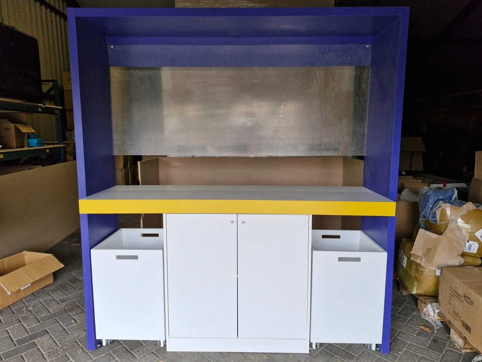 Exclusief elektronica Nieuw in verpakking Balie hoogte 110cm Lengte: 210cm Breedte: 50cm Hoogte: 228cm