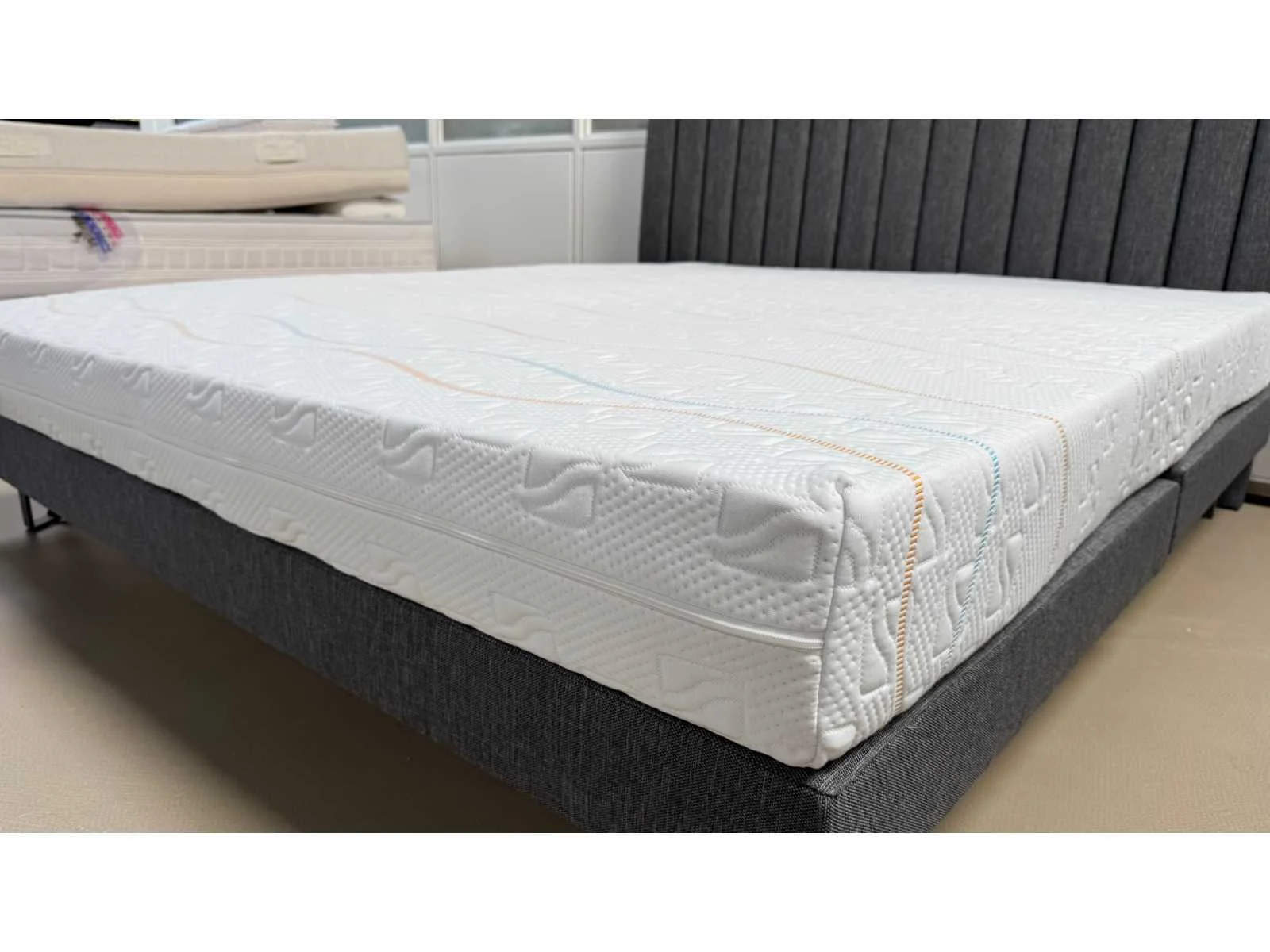 Voorzien van Optimum Complience, ventilatie, anti-allergic, etc. Dit betreft een nieuw product in verpakking. Zonder boxspring op de foto en zonder kussens op de foto. Winkelverkoopprijs: €2999,-. Merk: M-Line Model: Superbe Medium Hoogte: 18cm Lengte: 200cm Breedte: 180cm