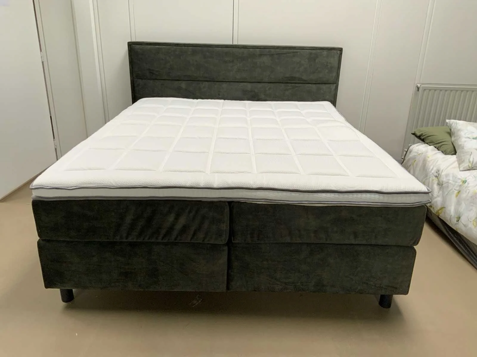 Dit betreft een nieuw product in verpakking. Het stof motief van de topper kan wijzigen van de weergegeven foto’s. Winkel verkoopprijs per stuk: €1049,-. Zonder boxspring op de foto. Merk: MTF Breedte: 180cm Lengte: 200cm