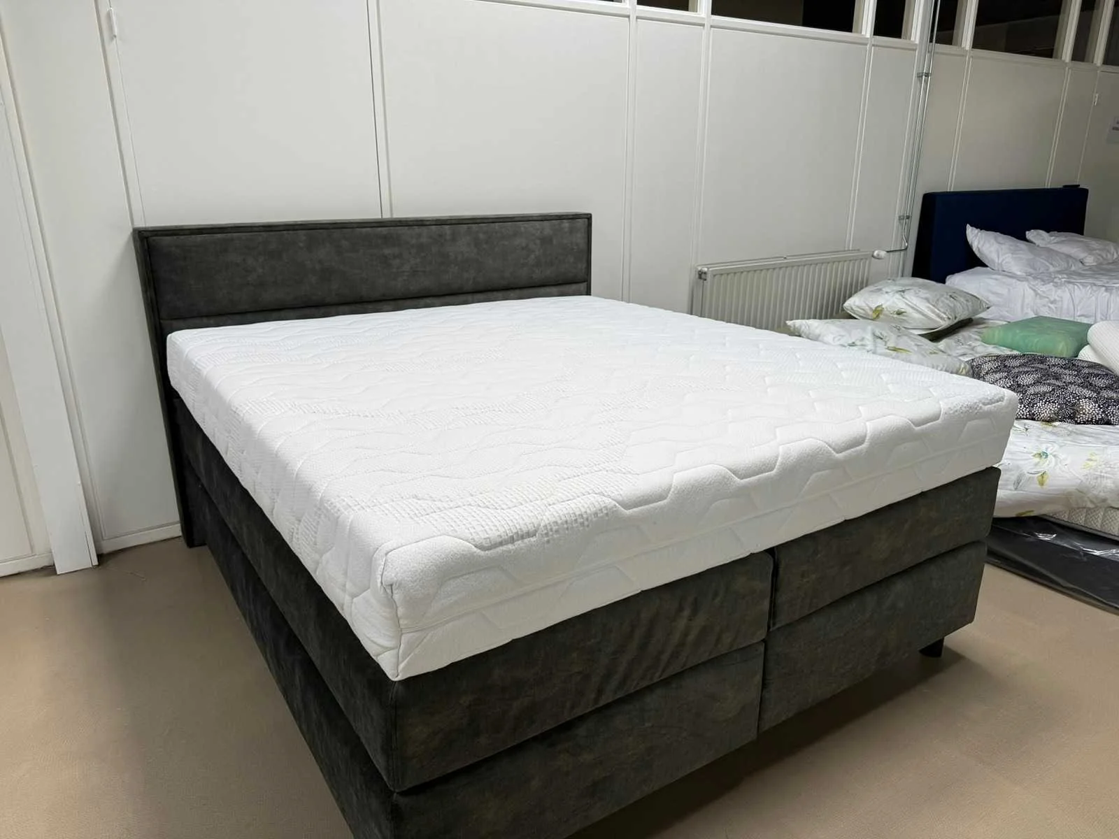 Dit betreft een nieuw product in verpakking. Winkelverkoopprijs per stuk: €1445,-. Zonder boxspring op de foto. Stof motief kan verschillen van de weergegeven foto. Merk: MTF Breedte: 180cm Lengte: 210cm