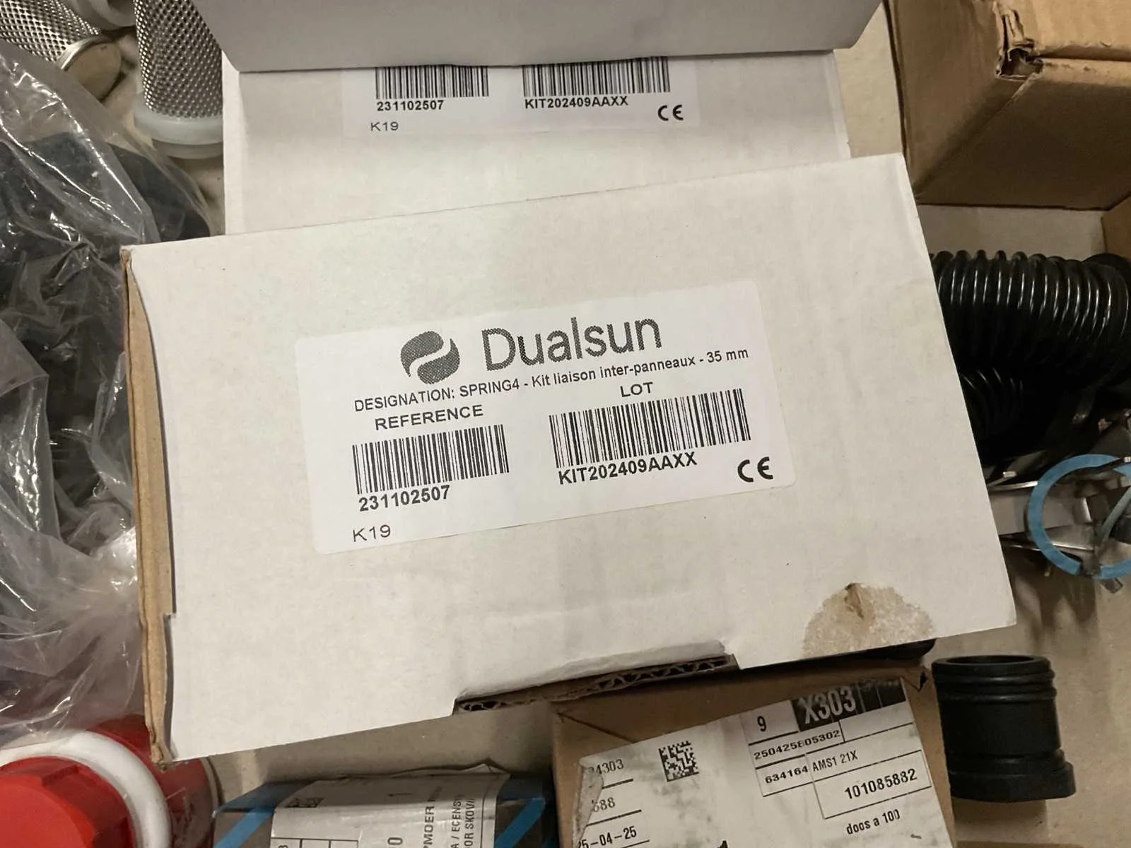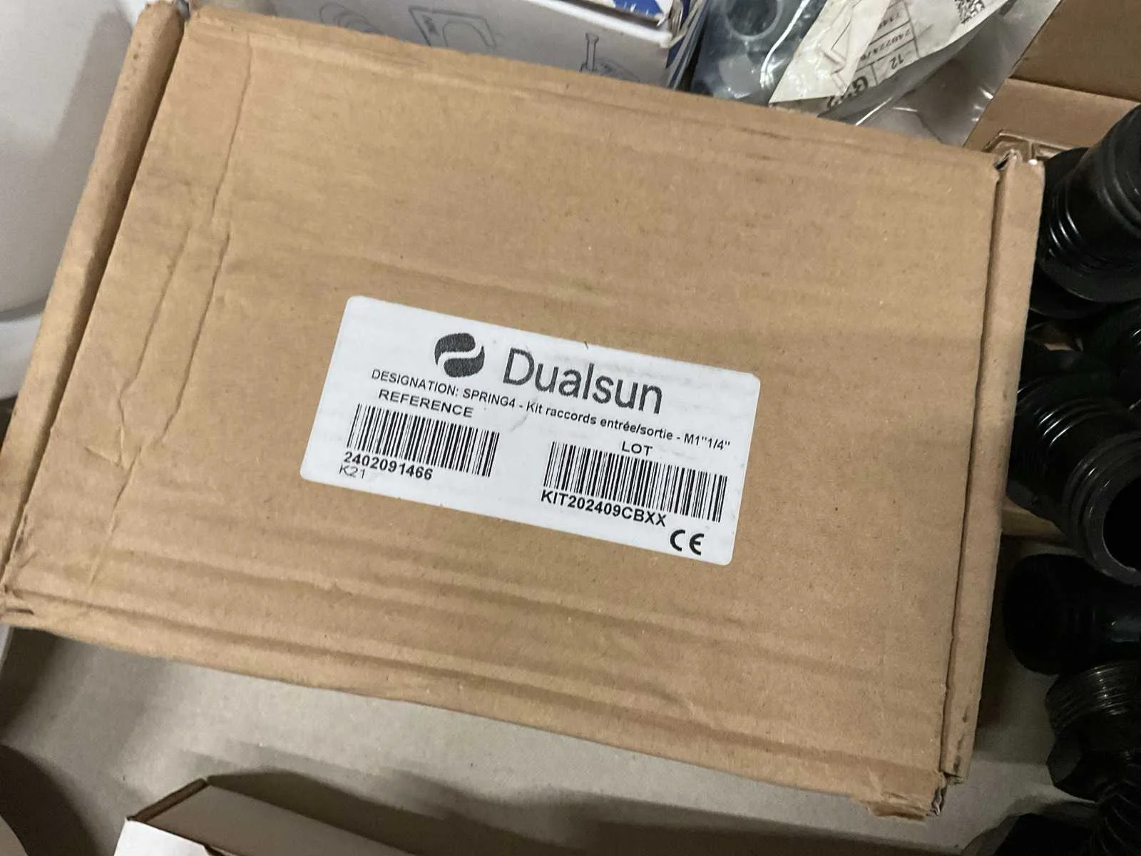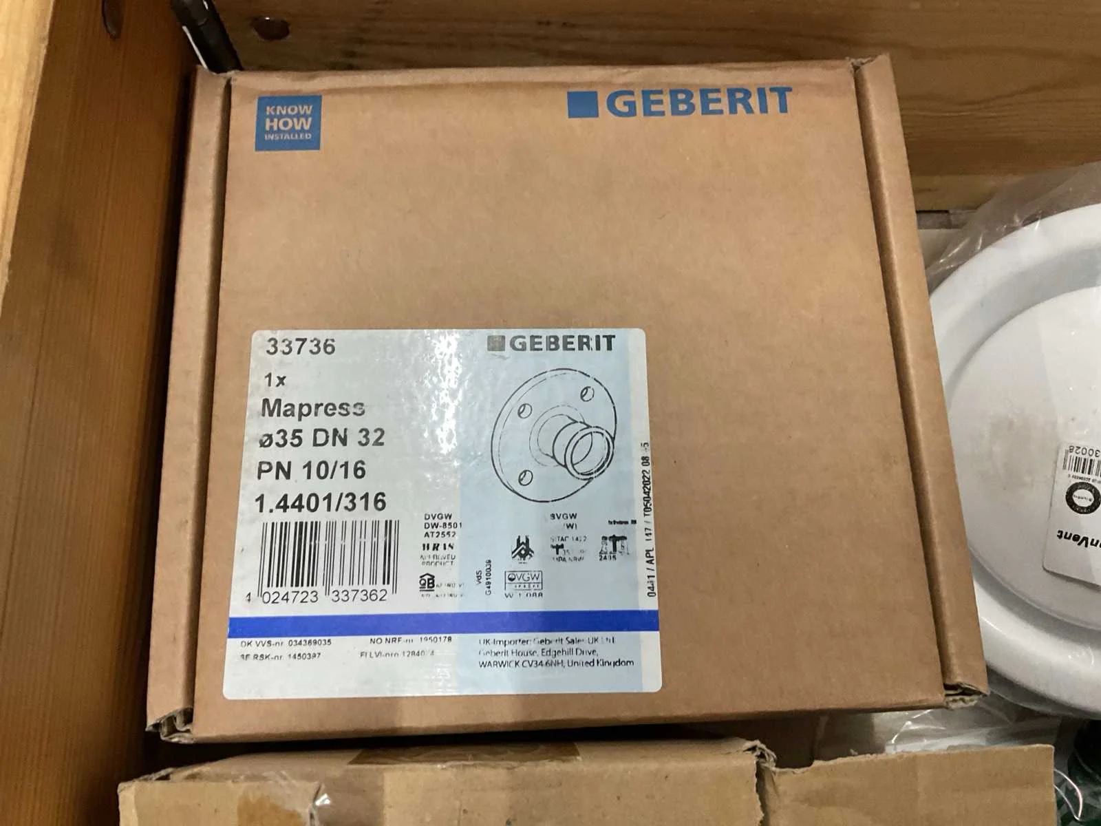 Incl. kunststof magazijnbakken. Bestaande uit: o.a. toevoerventielen, leidingbeugels, koppelstukken, filters, bevestigingsmaterialen, etc.