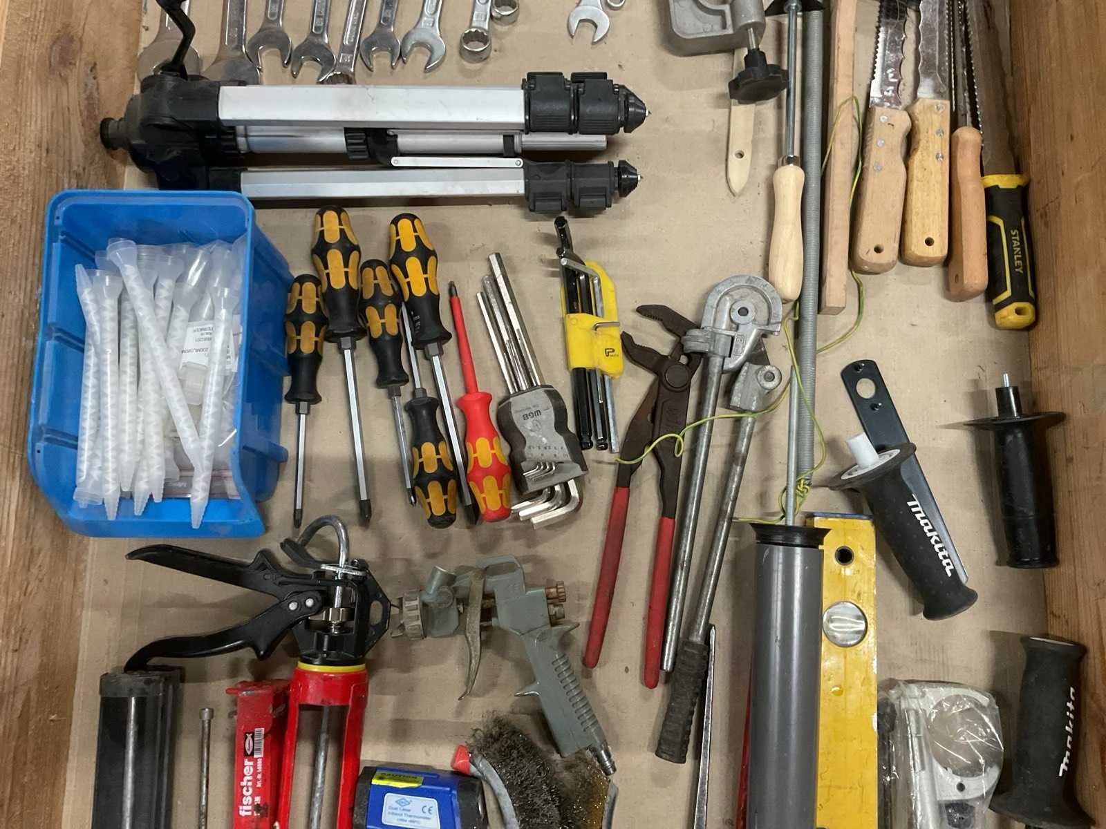Bestaande uit: o.a. isolatie messen, steeksleutels, kitdrukkers, staalborstels, schroevendraaiers, etc.