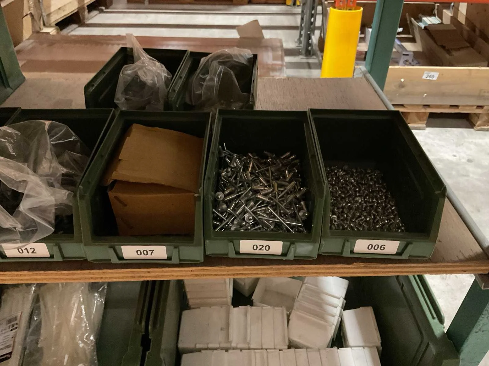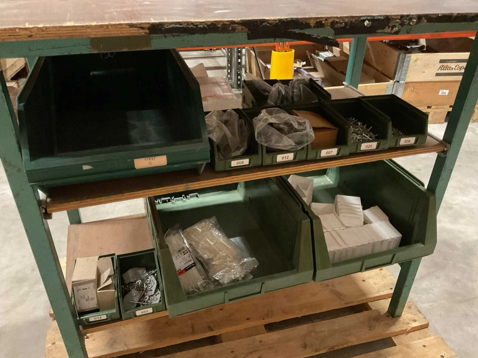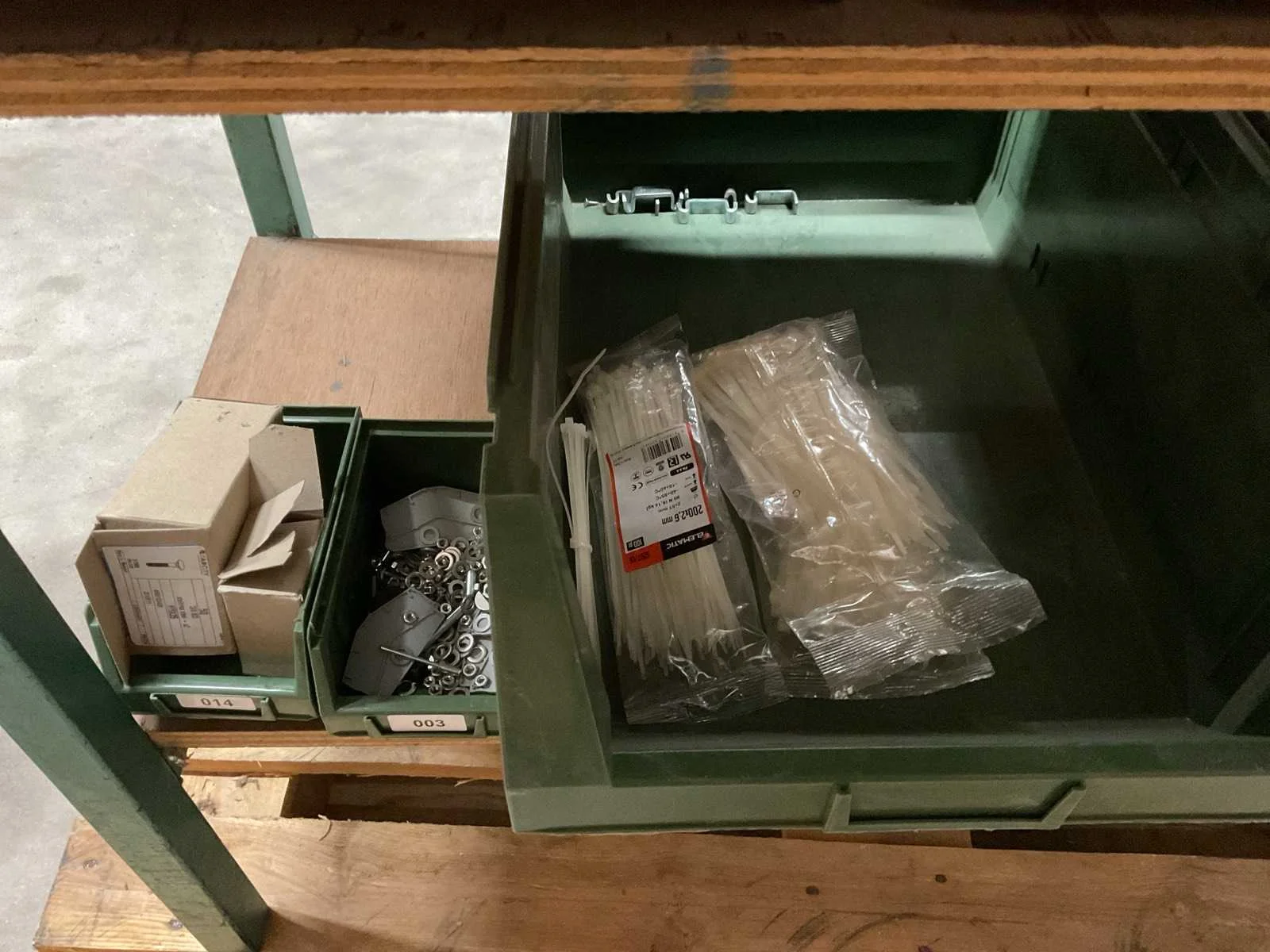 Incl. inhoud, o.a. magazijnbakken, bevestigingsmaterialen, etc. Lengte: 107cm Breedte: 66cm Hoogte: 99cm Materiaal: Metaal / Hout