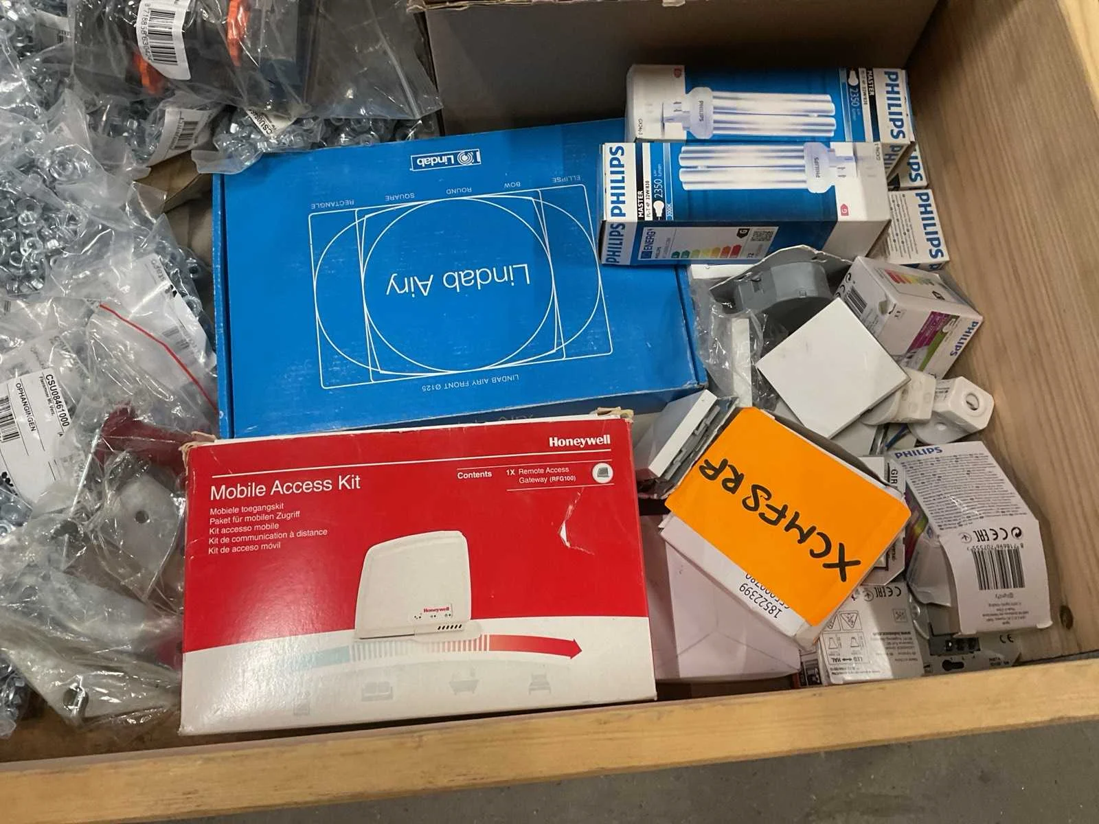 Bestaande uit: o.a. aardklemmen, M6x10 vertand schroeven, M6 flensmoeren, Honeywell mobiele toegangskit, schakelmateriaal, etc.